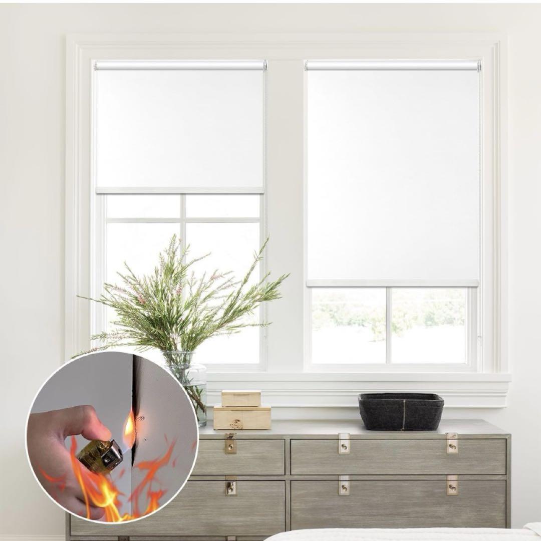 【防炎生地】ガラス繊維+防炎塗装付きの生地で作られたロールスクリーンは難燃性があり、ホテル、ショッピングモール、病院、学校など、消防安全要件のあるさまざまな場所に適しています。