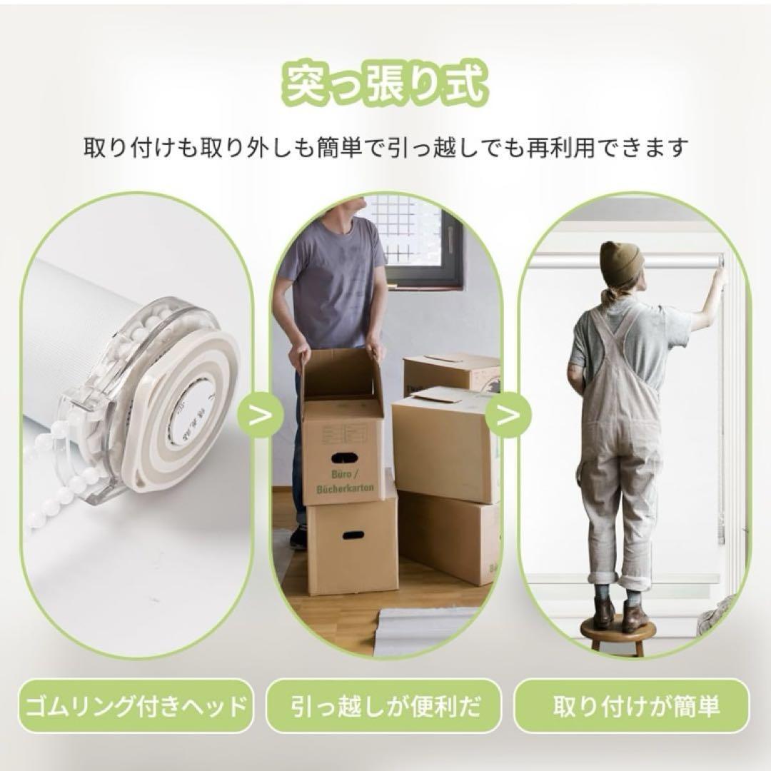 【突っ張り式ヘッド】突っ張り式 ヘッドには、ロールカーテンと窓枠の間の摩擦を高めるためのゴムリングが装備されており、穴を開けずに壁を傷つけずに摩擦サポートのみで取り付けられます。