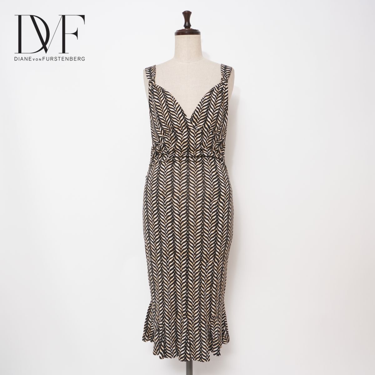 美品 DIANE von FURSTENBERG ダイアンフォンファステンバーグ シルク キャミソールワンピース ミモレ丈 裏地なし ブラック サイズ4*GD747