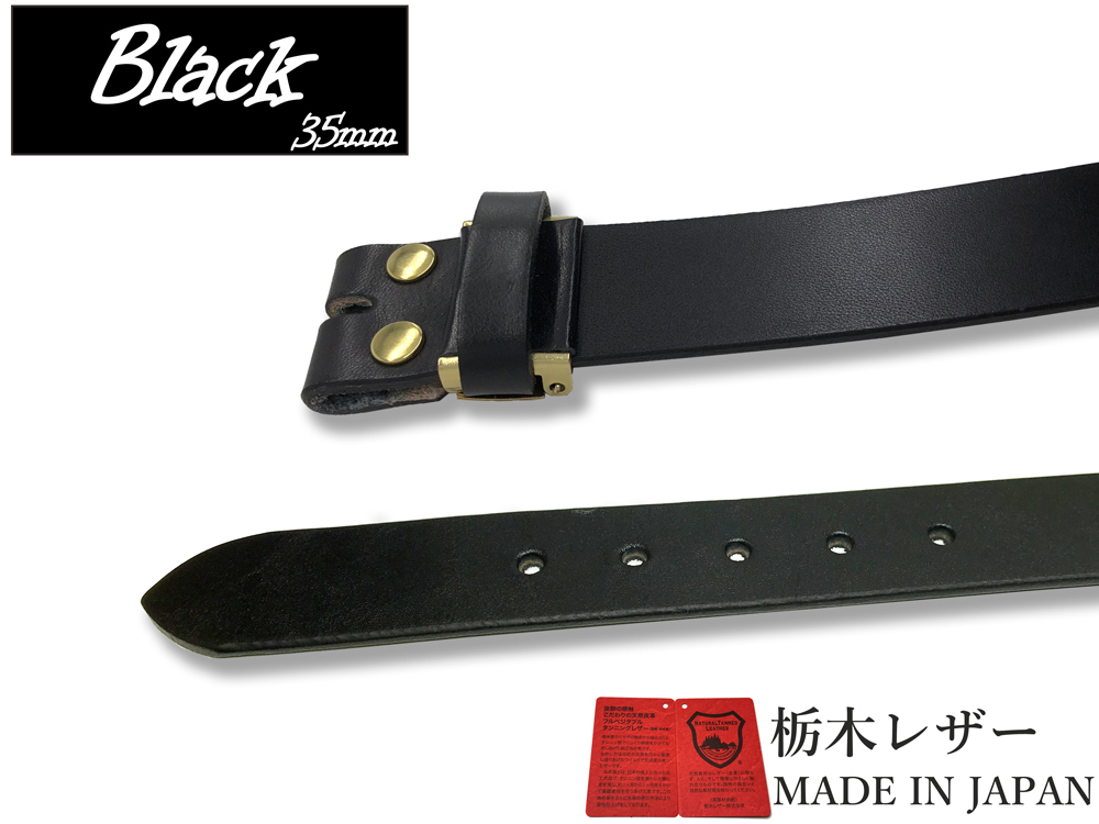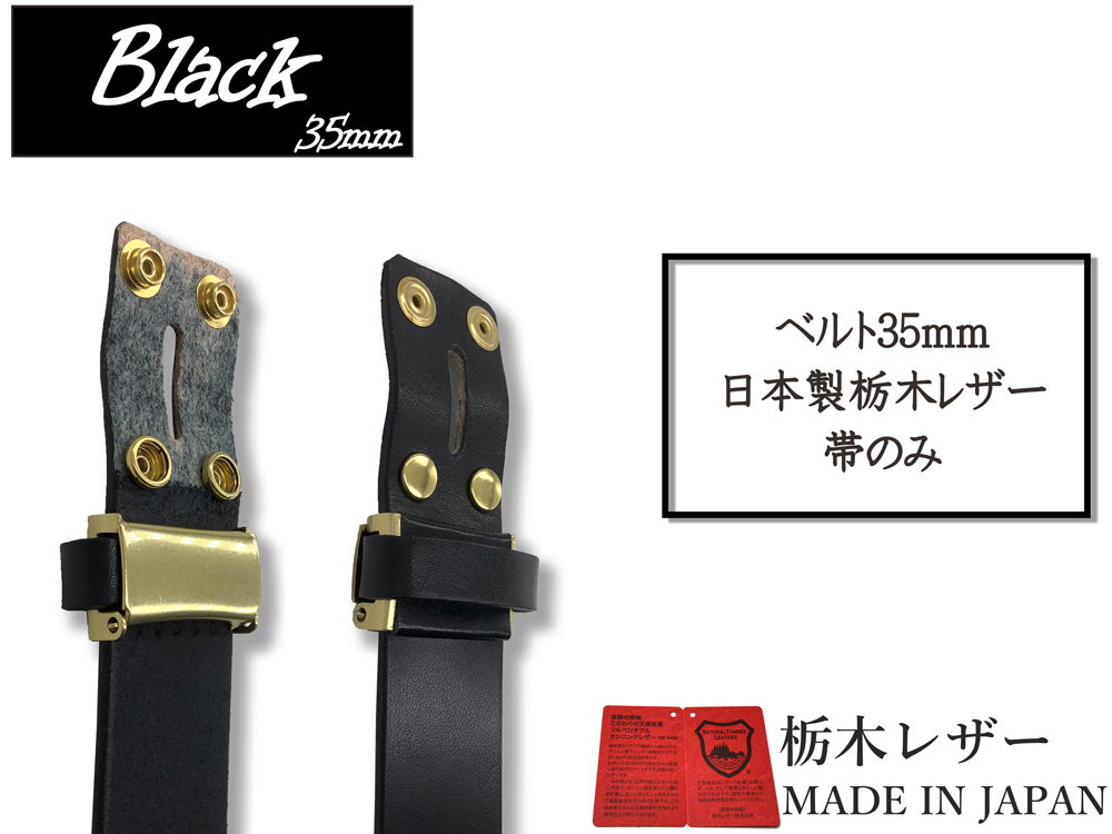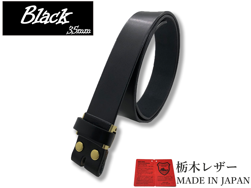 新品 栃木レザー カジュアルベルト Mサイズ メンズ 無地 帯のみ 本革 交換用 取り換え 牛革 35mm 黒 ブラック 金ホック W049BKG