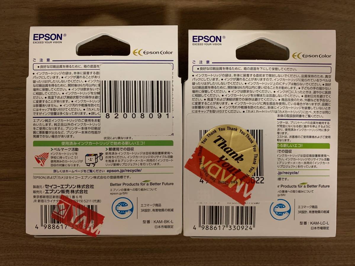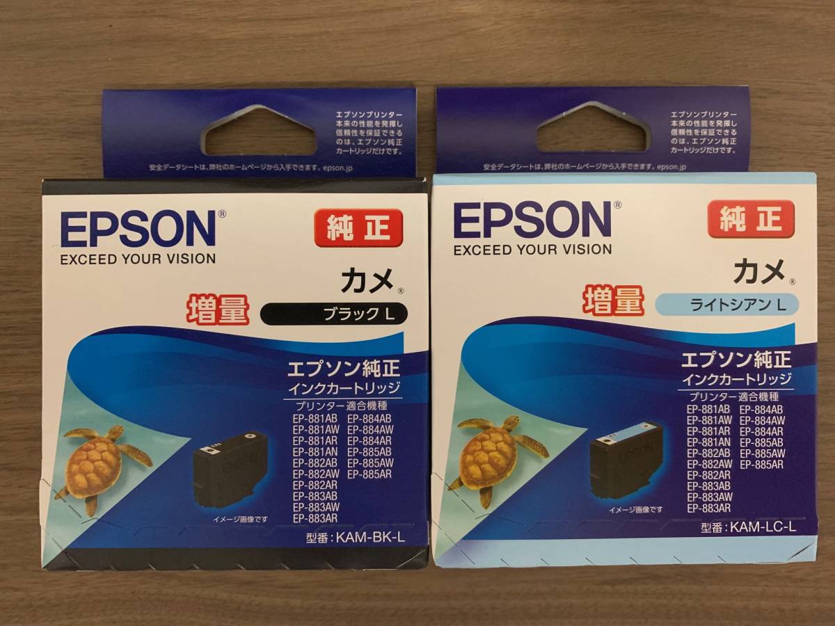 EPSON/エプソン 純正 インクカートリッジ 2個セット (KAM-BK-L カメ ブラック 増量 1個・KAM-LC-L カメ ライトシアン 増量 1個)