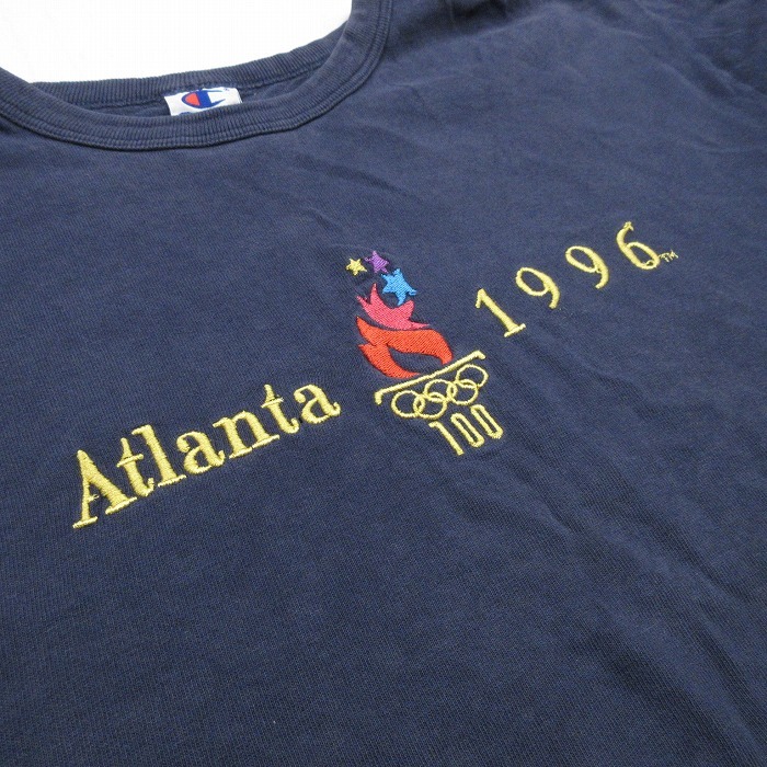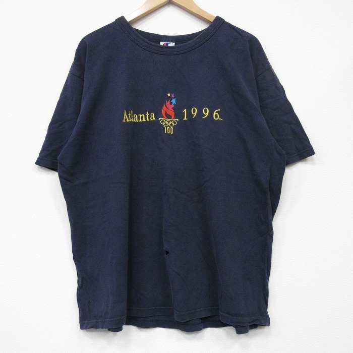 【商品名】 XL★古着 チャンピオン champion 半袖 ビンテージ Tシャツ メンズ 90年代 90s アトランタオリンピック 刺繍 大きいサイズ コットン クルーネック 紺
