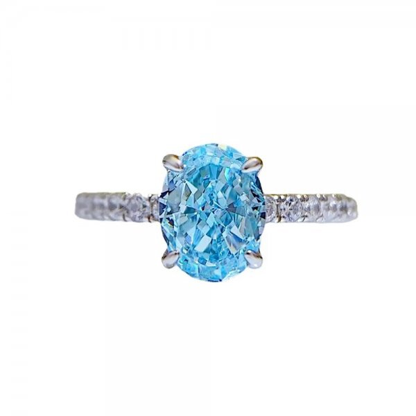 女性用アクアマリンリング、925シルバー、高炭素ダイヤモンド