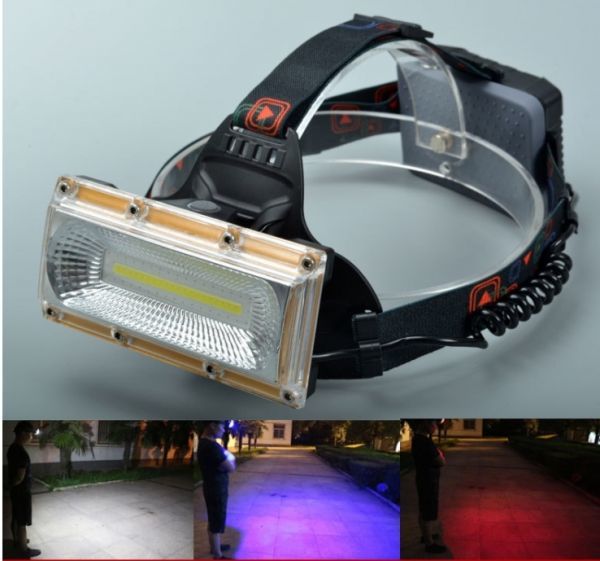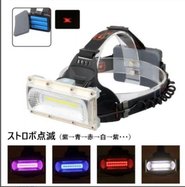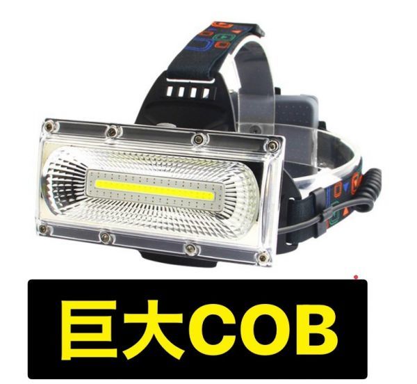 バッテリー標準装備 『黒』18650充電電池3本付き巨大COB LED ヘッドライト ヘッドランプ ヘルメットランプ ヘルメットライト
