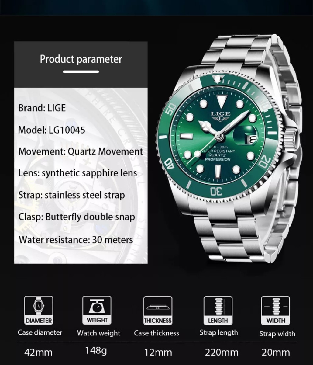 リゲ高級ブランドのダイバーウォッチ,防水,30atm,スポーツ,です。 本体素材:ステンレス ムーブメント:クォーツ バンド:ステンレス ケース直径:41mm、ケース厚み:13mm、バンド幅:22mm 、バンドの長さ:22cm、防水:30m 風防素材:ハードレックス 取説付き 輸入品のため、小さい傷等ある場合ございます。よろしくお願いします。 他サイトでも販売しているため売り切れの場合はキャンセル扱いになりますのでご了承下さい。 キーワード 腕時計 メンズIigeLIGEリゲ シンプル普段使い、デート、食事、集まり、忘年会、飲み会、結婚式、冠婚葬祭、参観日、仕事、記念日、クリスマス、レディース、女性、奥さん、インスタ映え、クリスマス、ホワイトデー、誕生日、父の日、子供さんにかっこいいかわいい可愛いおしゃれラグジュアリースポーツ