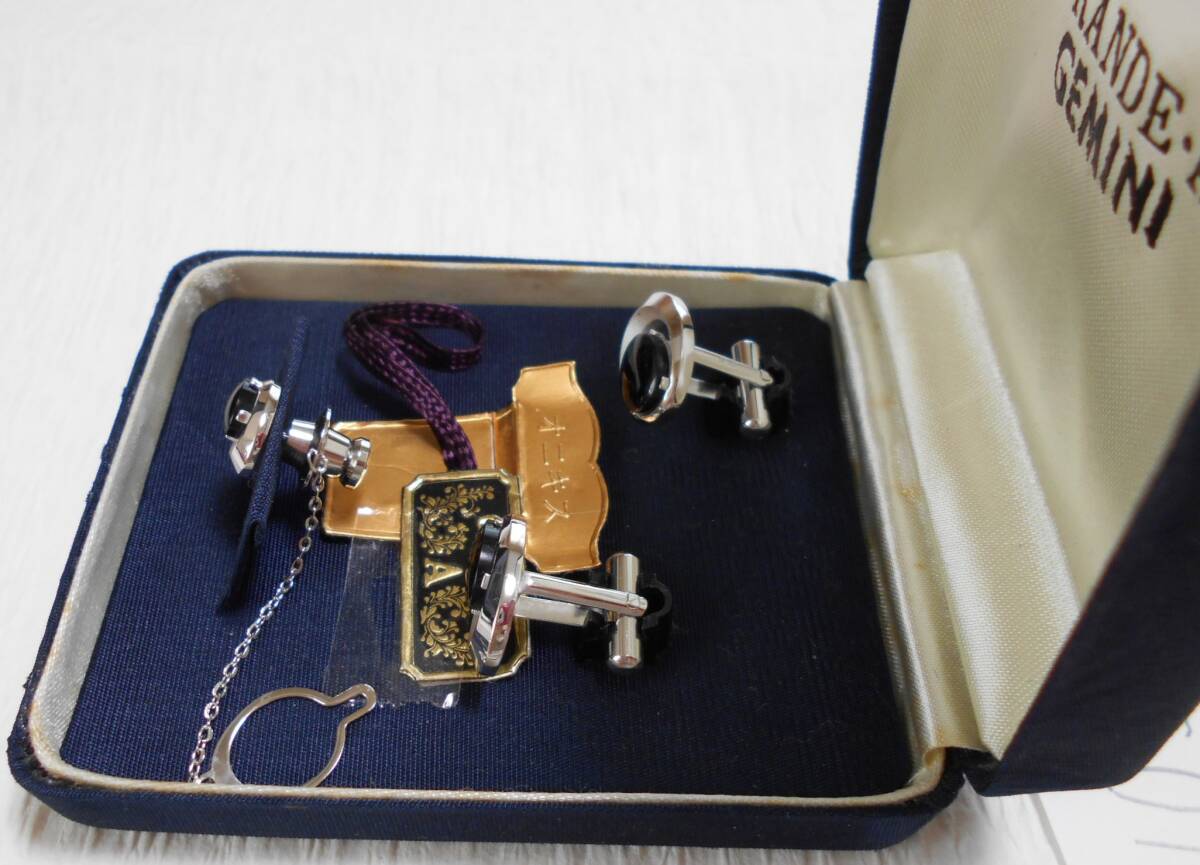 天然石のオニキスを使ったネクタイピンとカフスボタンのセット/GRANDE-A GEMINI/2405-S9/未使用