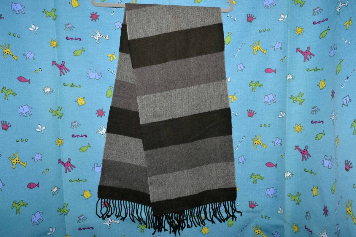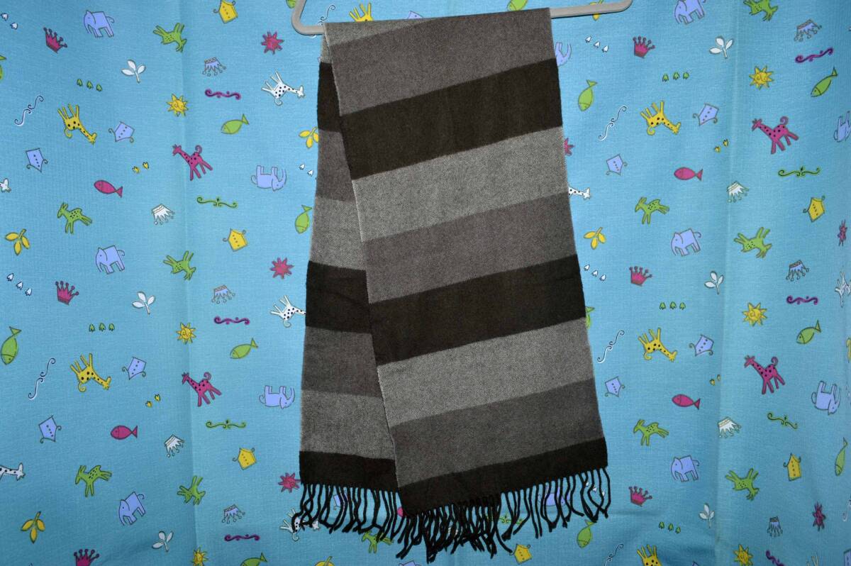 ☆商品名: 無印良品 ・ウール 100%マフラー 茶系色 フリンジ サイズ:133㎝X29㎝(中古)☆