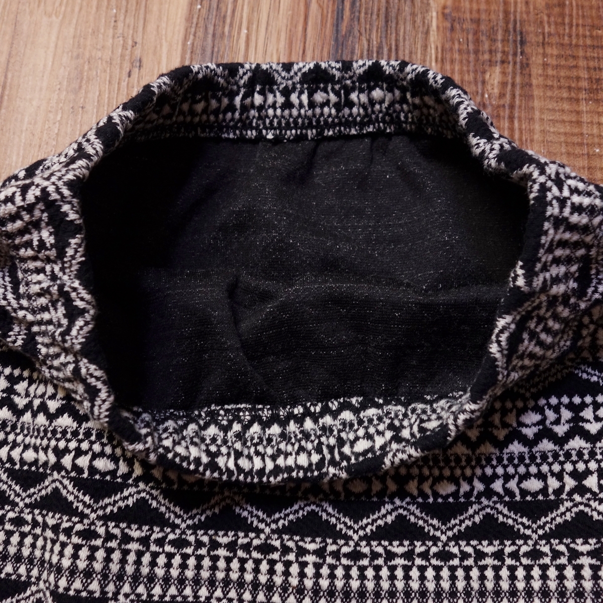 ・幾何学ジャガード柄がコーデのアクセントに