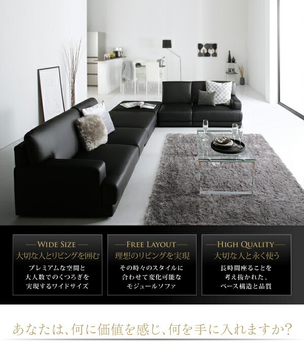 コーナーカウチソファ レイアウト自由 家族でリビングを囲める大型モダンデザインコーナーカウチ オットマン