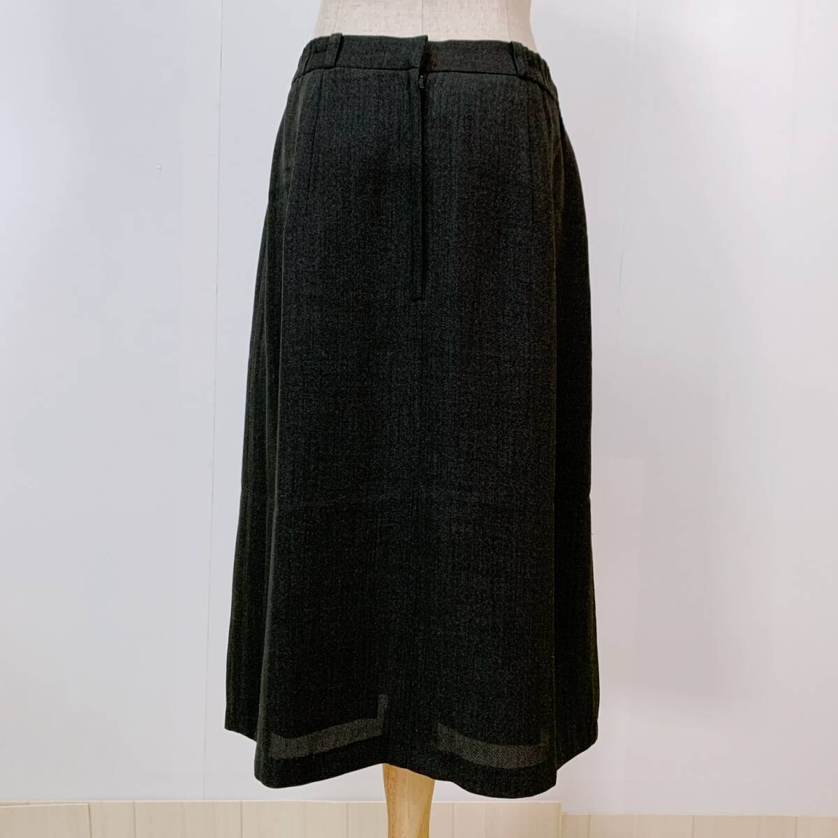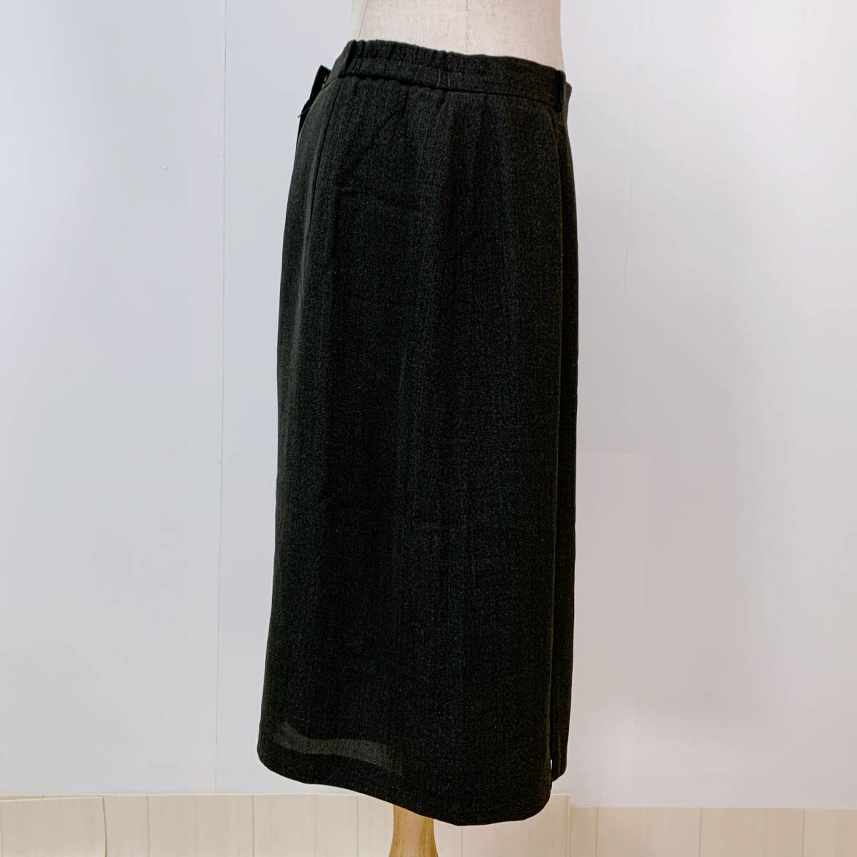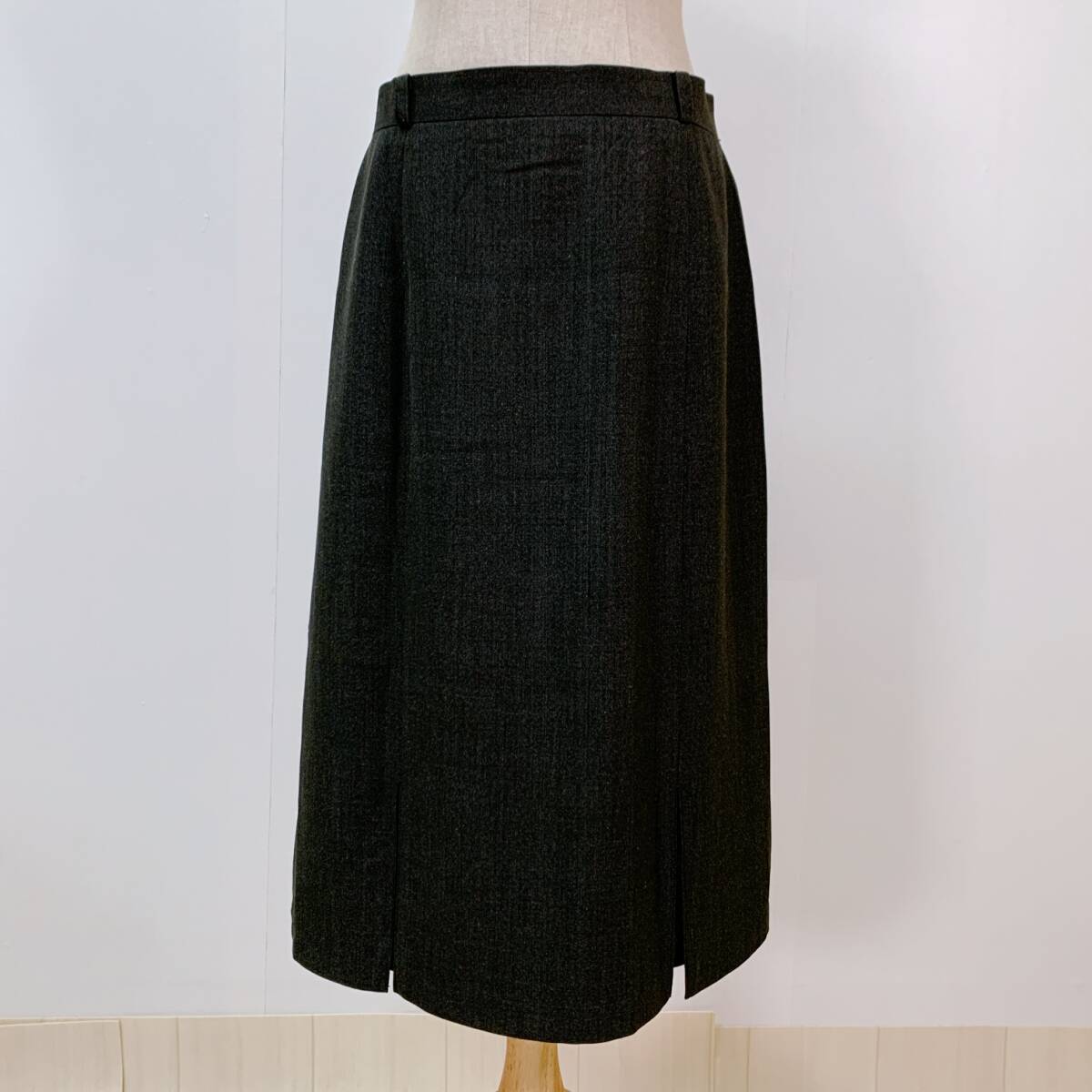YH1695 レディース ひざ下丈 スカート スリット グレー 無地 裏地あり オフィススタイル きれいめコーデ モノトーンコーデ 万能 USED 古着