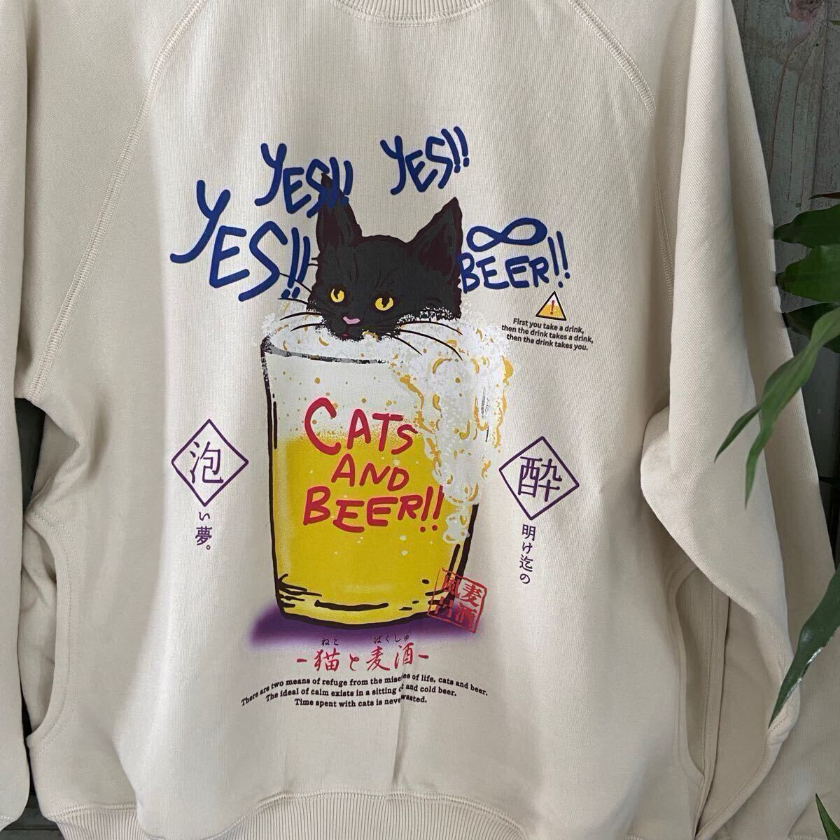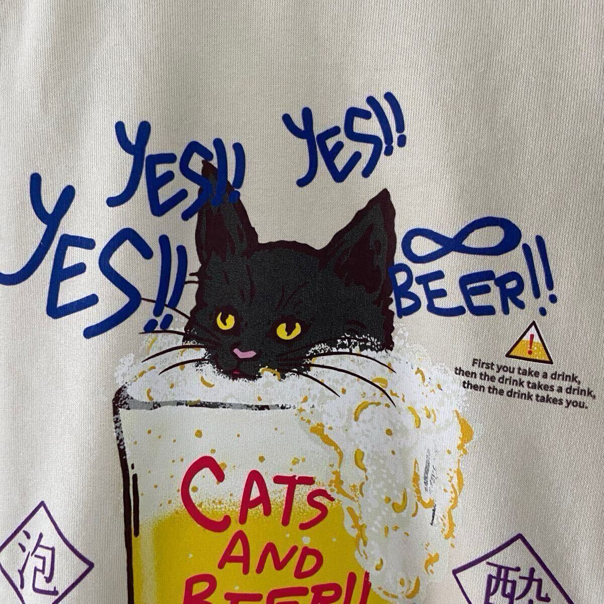 猫と麦酒をテーマに生地馴染みの良いインクジェットプリントでカラフルに表現。ボディーカラー毎に違う柄の猫をプリント。