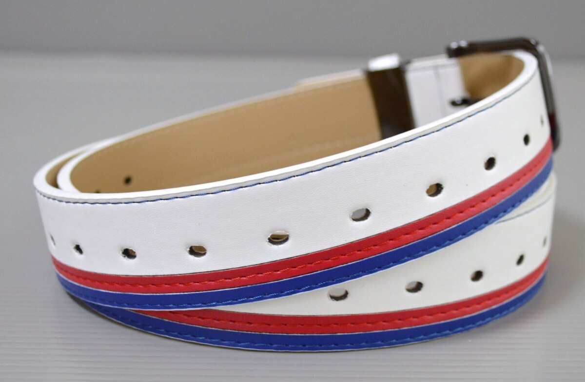 【カラー】ホワイトxブルーxホワイト(合成皮革)バックルxアンティークシルバー