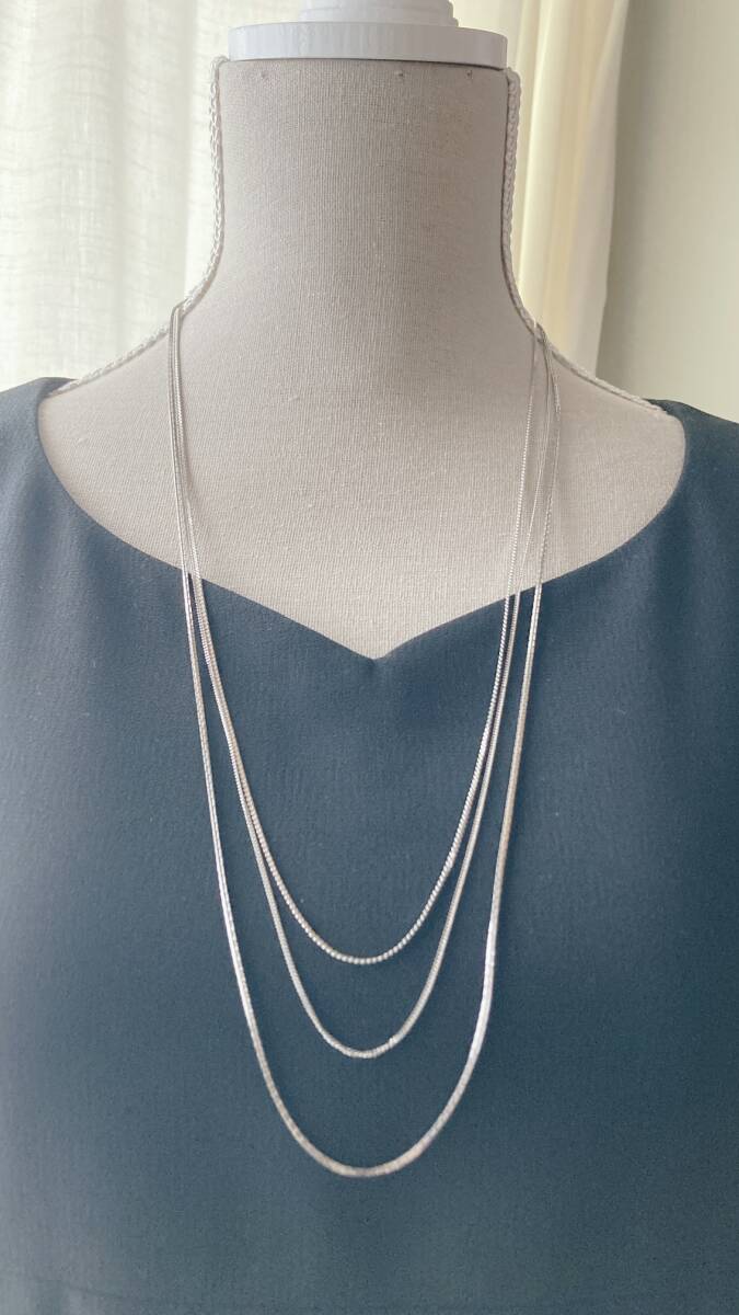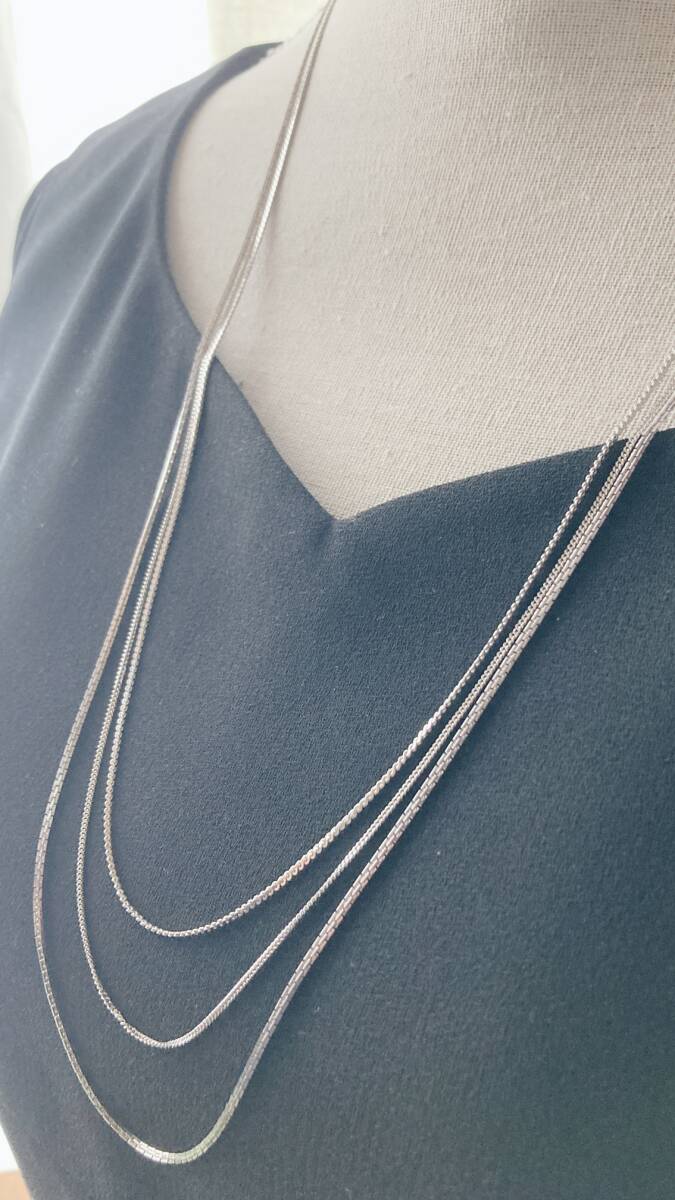 ネックレス ロング 細目チェーン 3連 トリプル シンプル 大人キレイ 美品 軽量☆Vintage jewelry accessories k0982