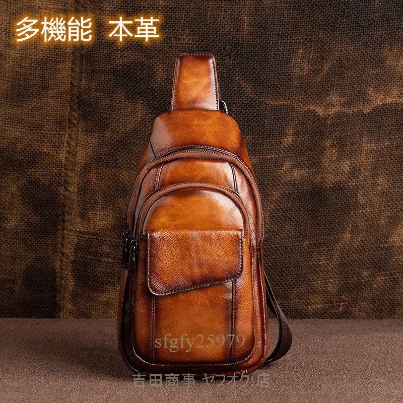 A5785☆新品メンズバッグ 牛革 ボディバッグ 本革 ワンショルダー 斜めがけバッグ おしゃれ 軽量 大容量 通勤 iPadmini収納可能