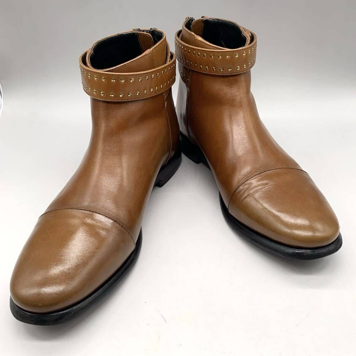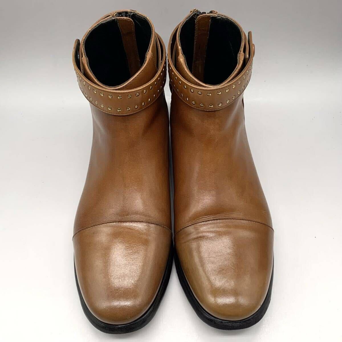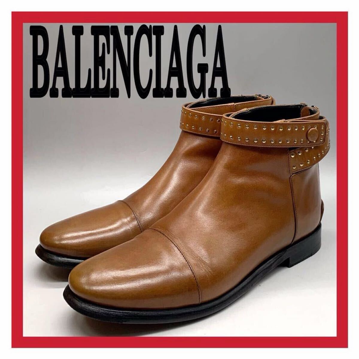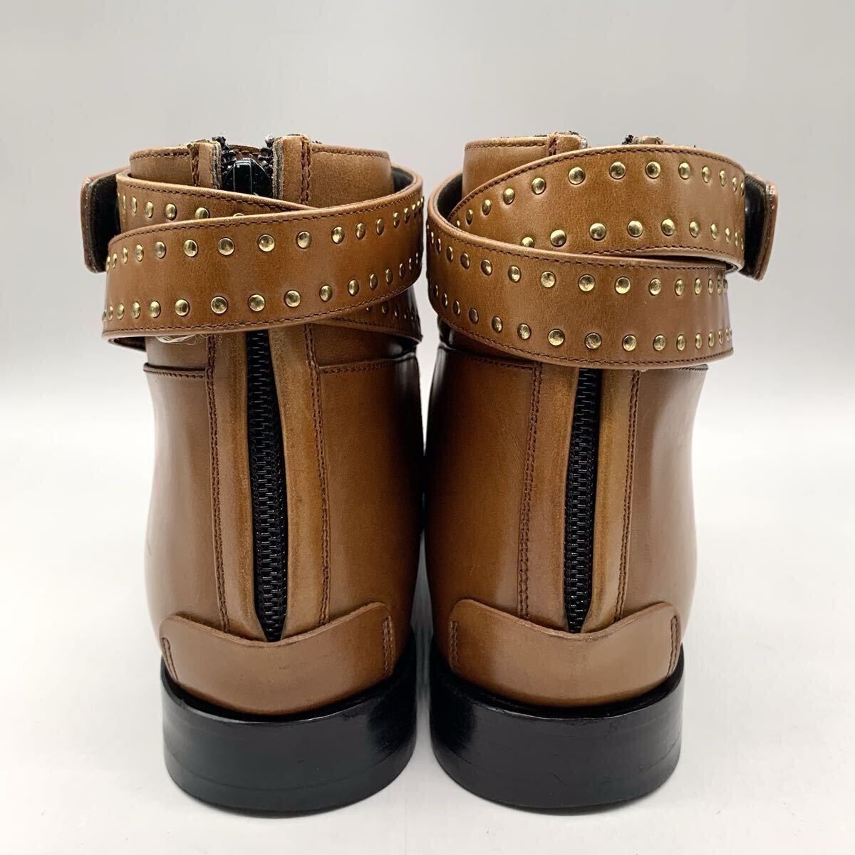 レディース BALENCIAGA [バレンシアガ] ショートブーツ スタッズ クロスベルト バックジップ レザー ブラウン 37 革靴 シューズ イタリア製