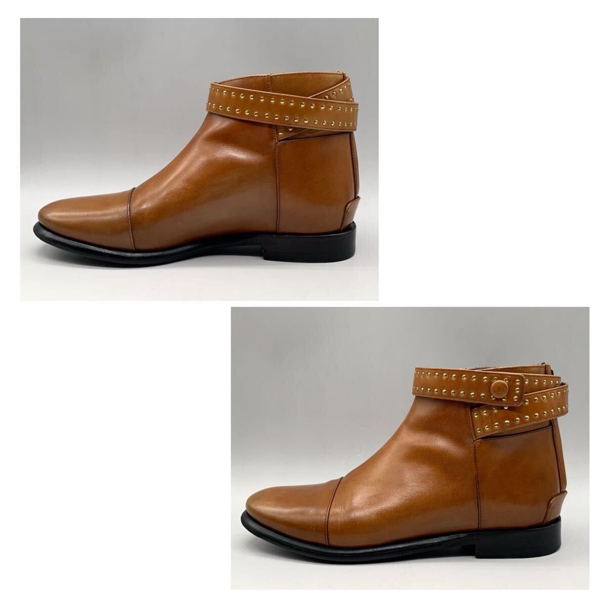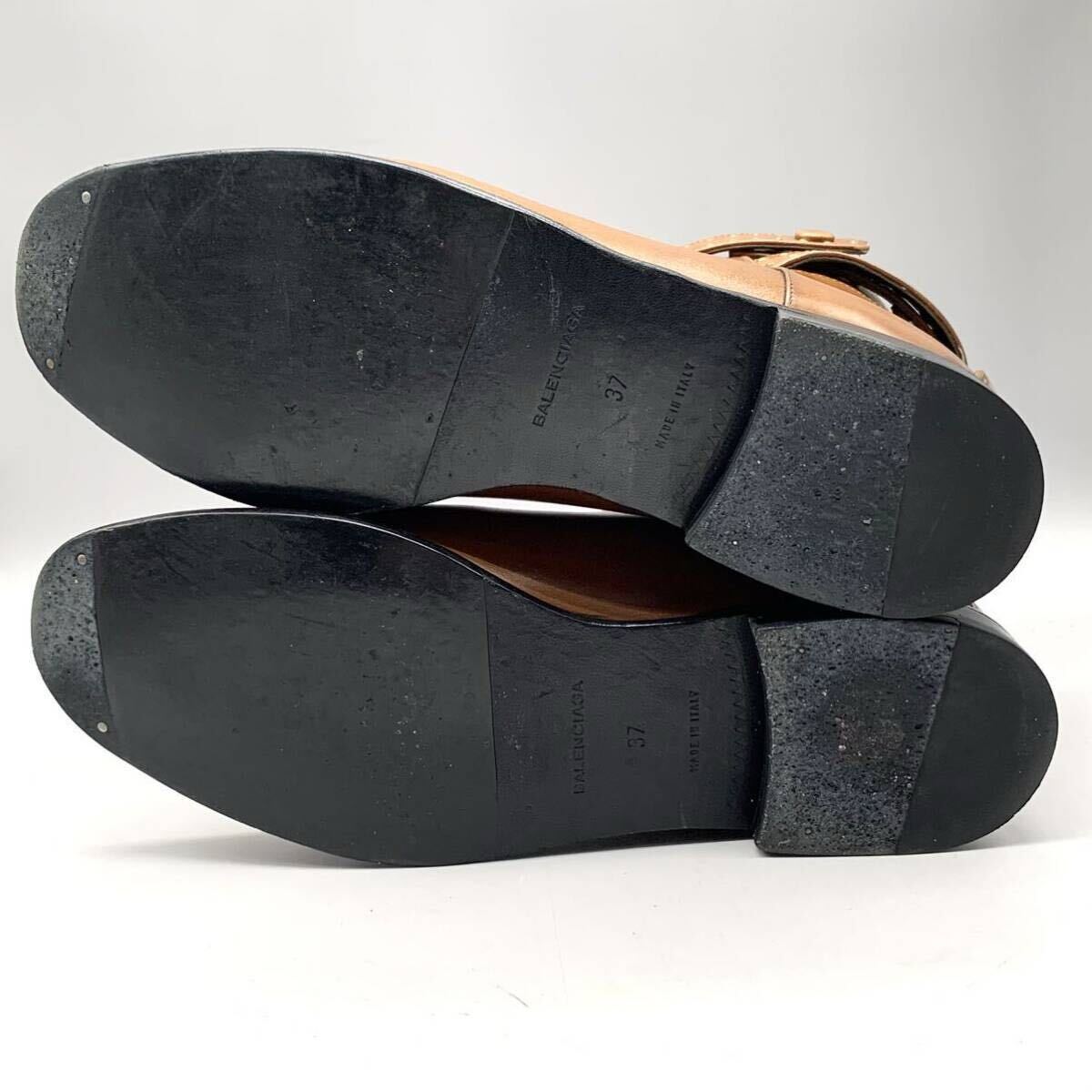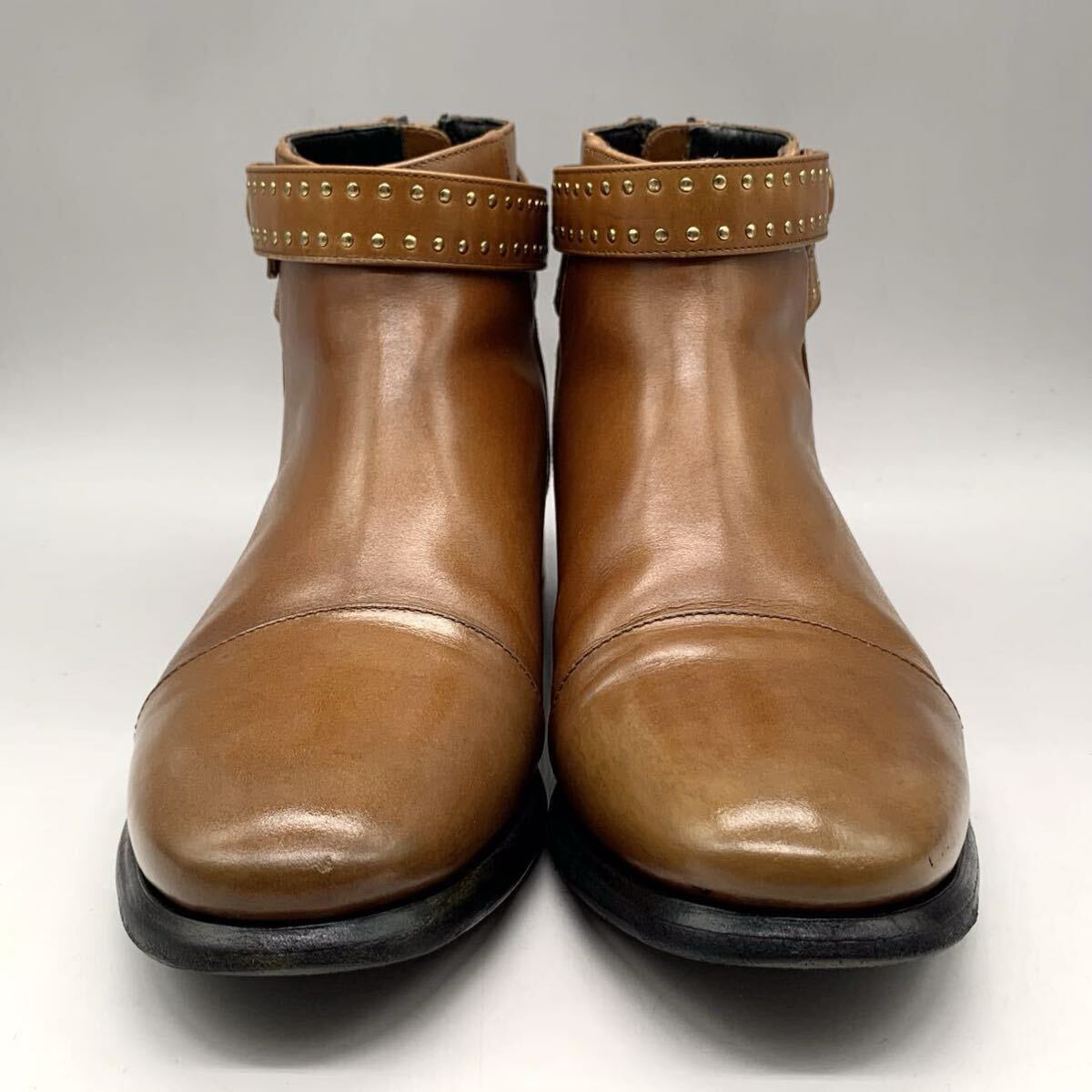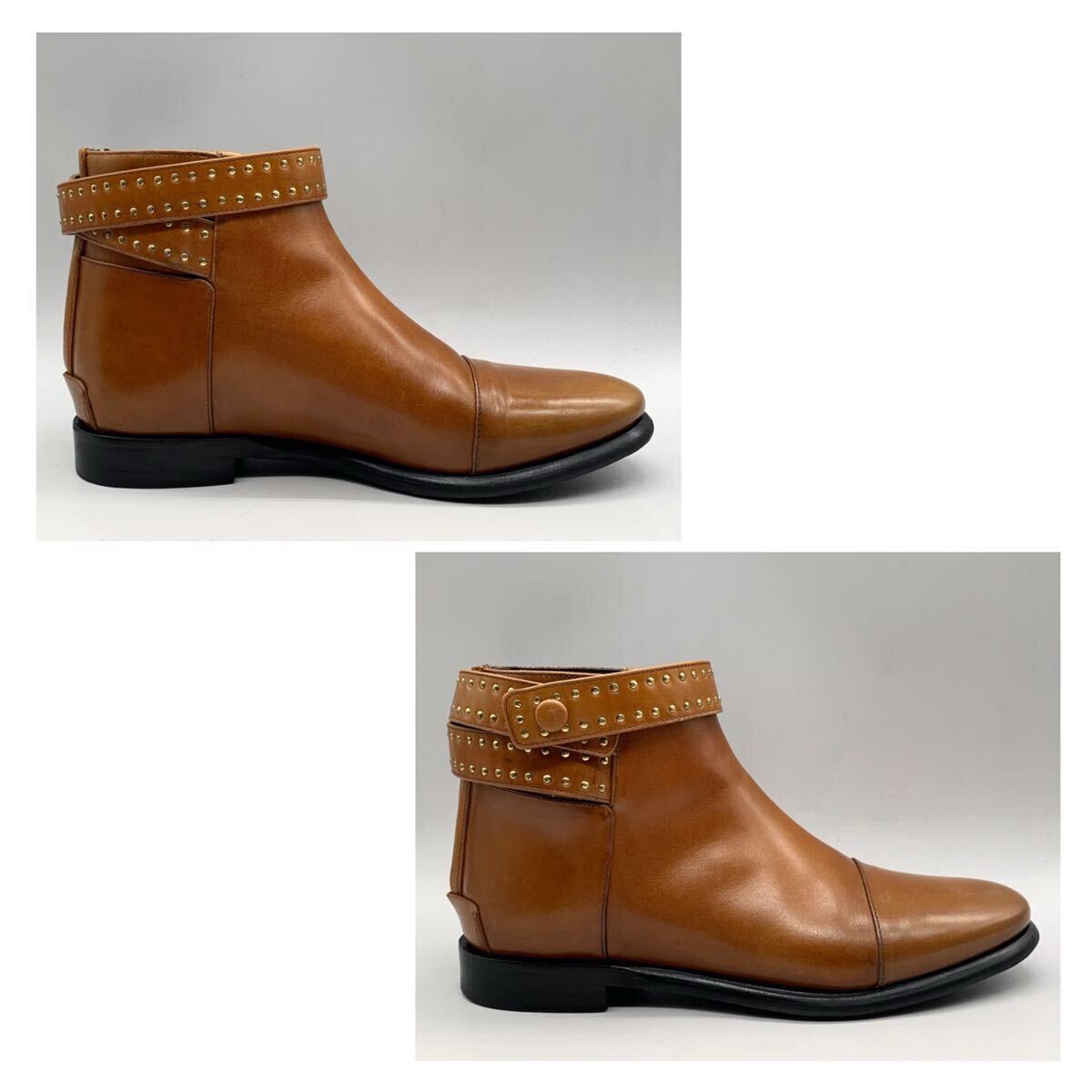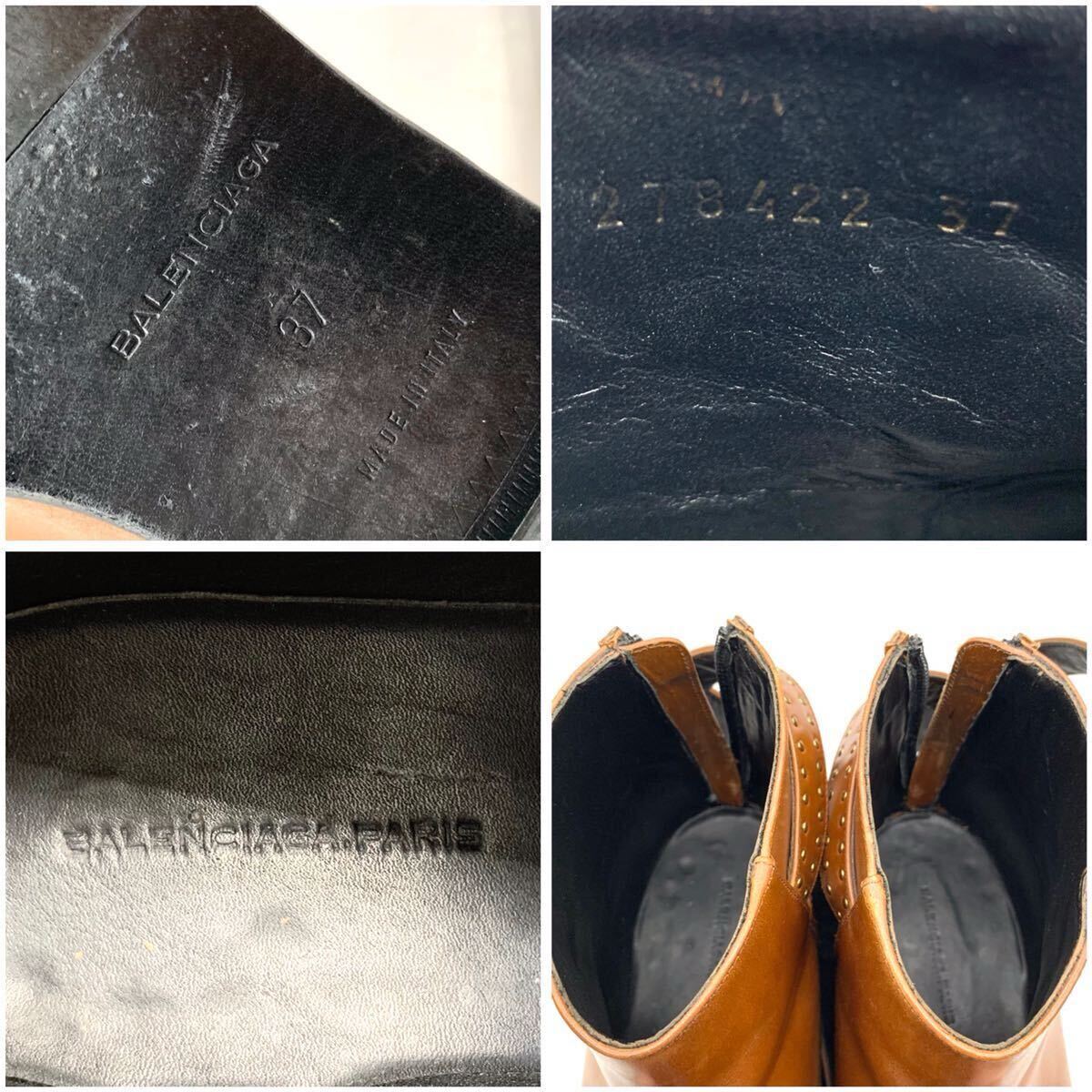 レディース BALENCIAGA [バレンシアガ] ショートブーツ スタッズ クロスベルト バックジップ レザー ブラウン 37 革靴 シューズ イタリア製
