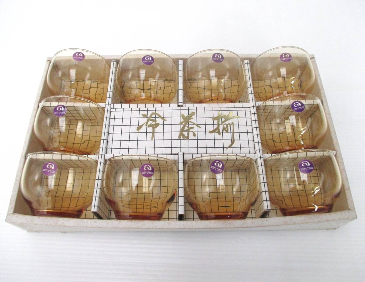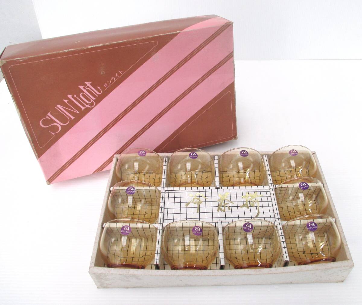 未使用 アデリア アンバーガラス 冷茶 グラス 10客セット コップ/アンバーカラー/琥珀色/飴色/昭和レトロ☆ADERIA GLASS