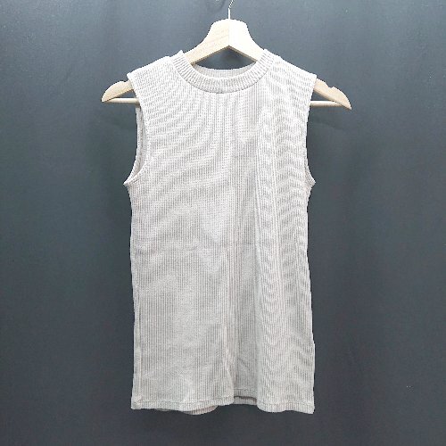 ◇ nano universe クルーネック リブ 無地 シンプル ノースリーブニット サイズ36 ベージュ レディース E