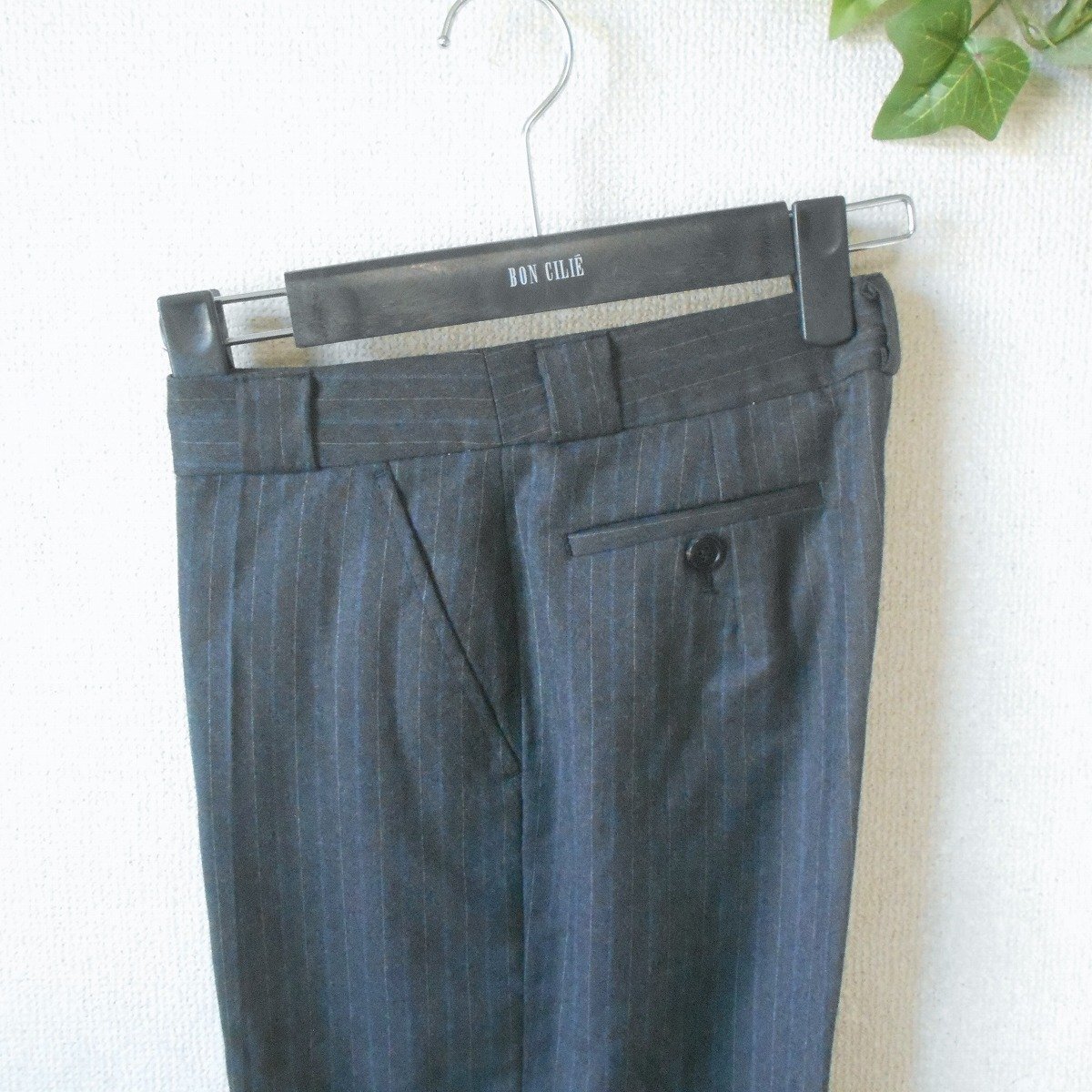 【ポイント】キヨコタカセさんのパンツになります。お色は濃いグレーベースで2色のストライプが入った秋冬を中心に着ていただけるお品です。