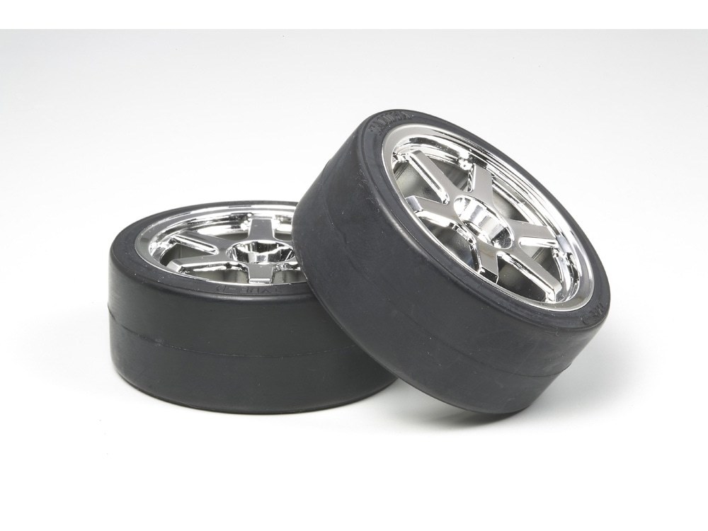 TAMIYA 6-SPOKE METAL PLATED WHEEL w/DRIFT TIRE TYPE D 2PCS. (26mm OFFSET+2)   新品