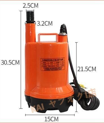 最大直径25mmの大容量排水口、海水、川などに適対応し、幅広く応用されています。電源コード長さ:3.3m全銅製モーター、防水ワイヤー、強化された厚いプラスチック絶縁ベースにより安全性で耐久性あります。最大揚程:8.5M 電圧:12V/24V
