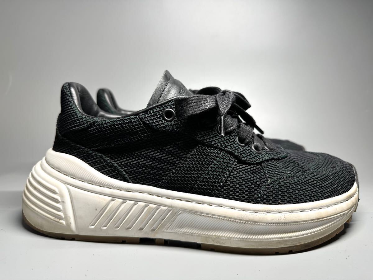 【即決】BOTTEGA VENETA レディース 37.5 24cm程度 ボッテガヴェネタ シューズ レザースニーカー イタリア製 カーキ 緑