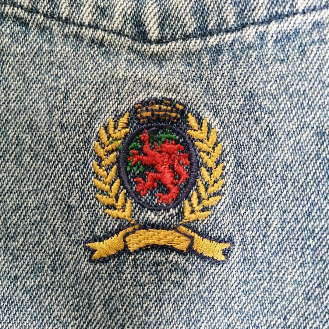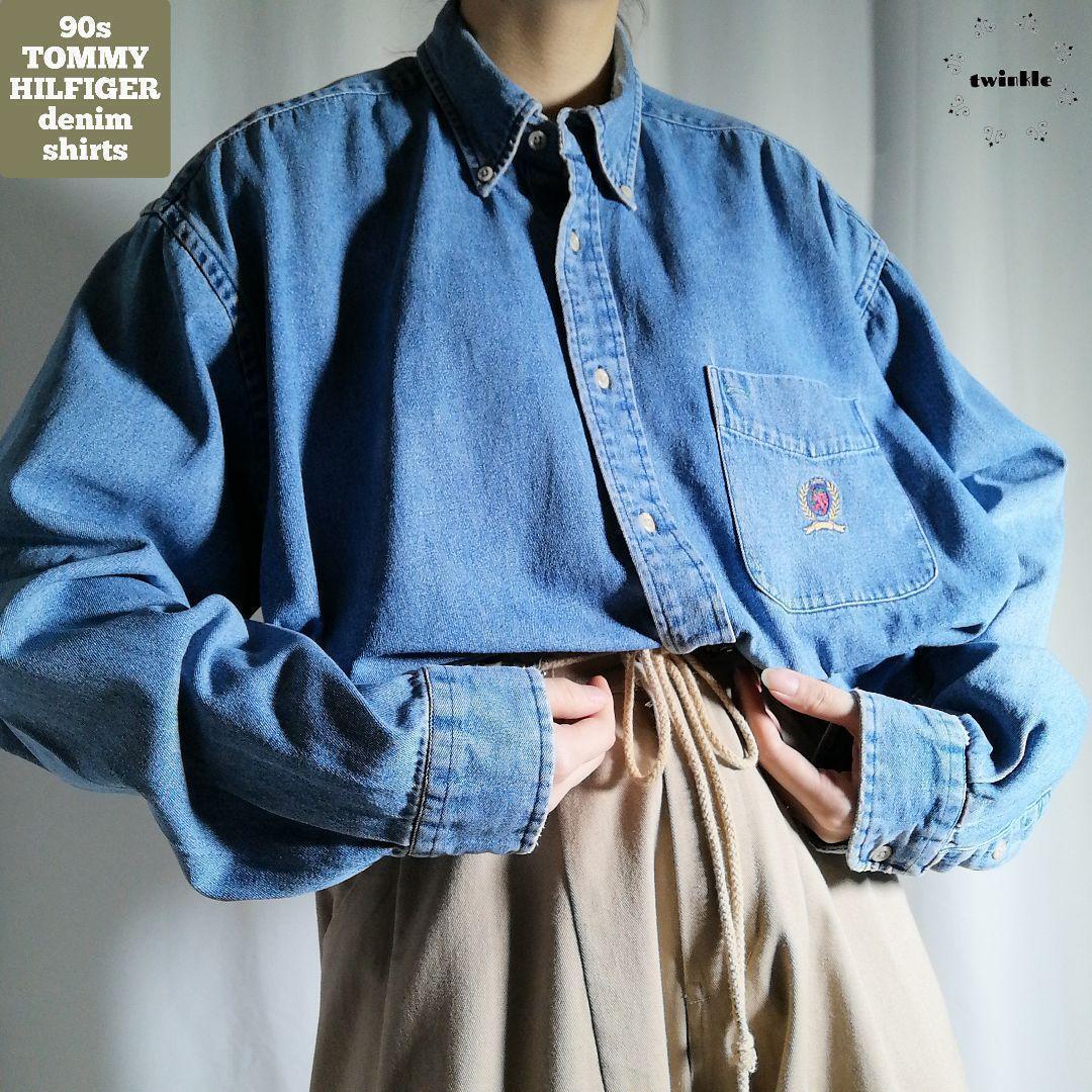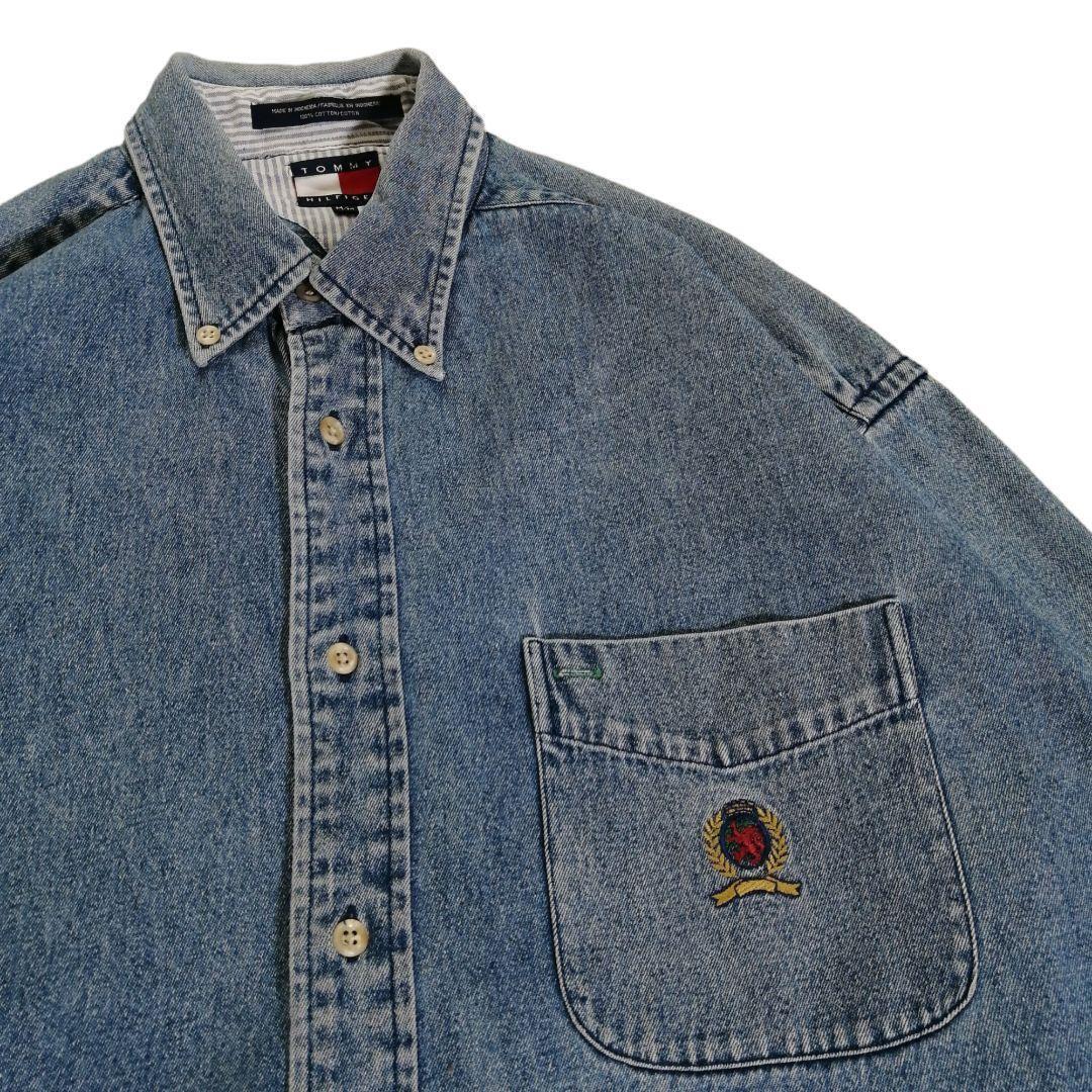 ■ USED 90年代 トミーヒルフィガー オールドトミー デニム 長袖シャツ BDシャツ ボタンダウン フラッグ 刺繍 ヴィンテージ ビッグシルエット USA古着
