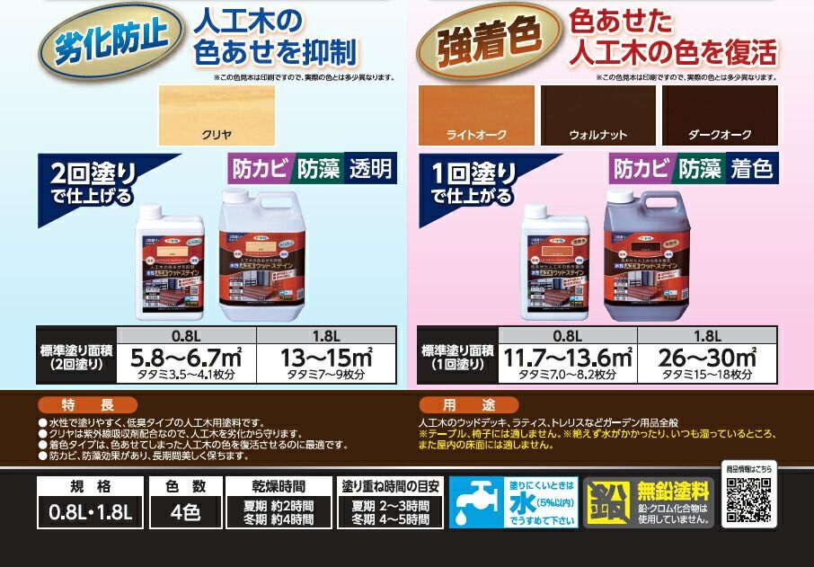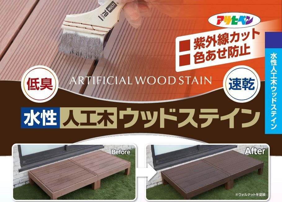 ●着色タイプは1回塗りで、色あせてしまった人工木の色を復活させるのに最適です。