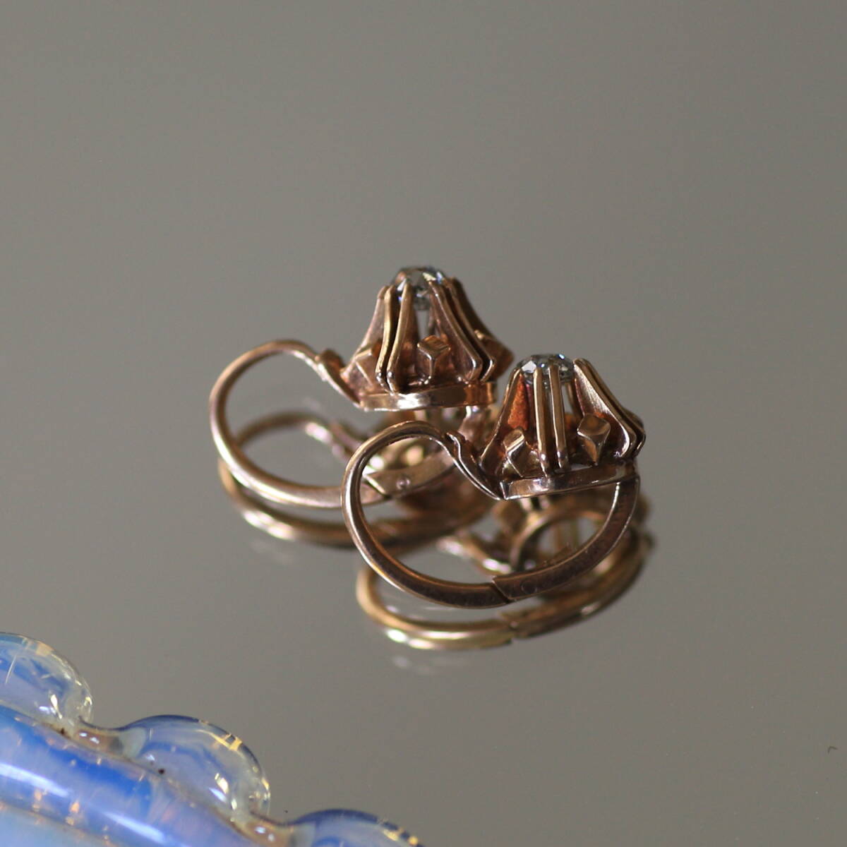 #0857*フランスアンティーク K18 ダイヤピアス ドルムーズ