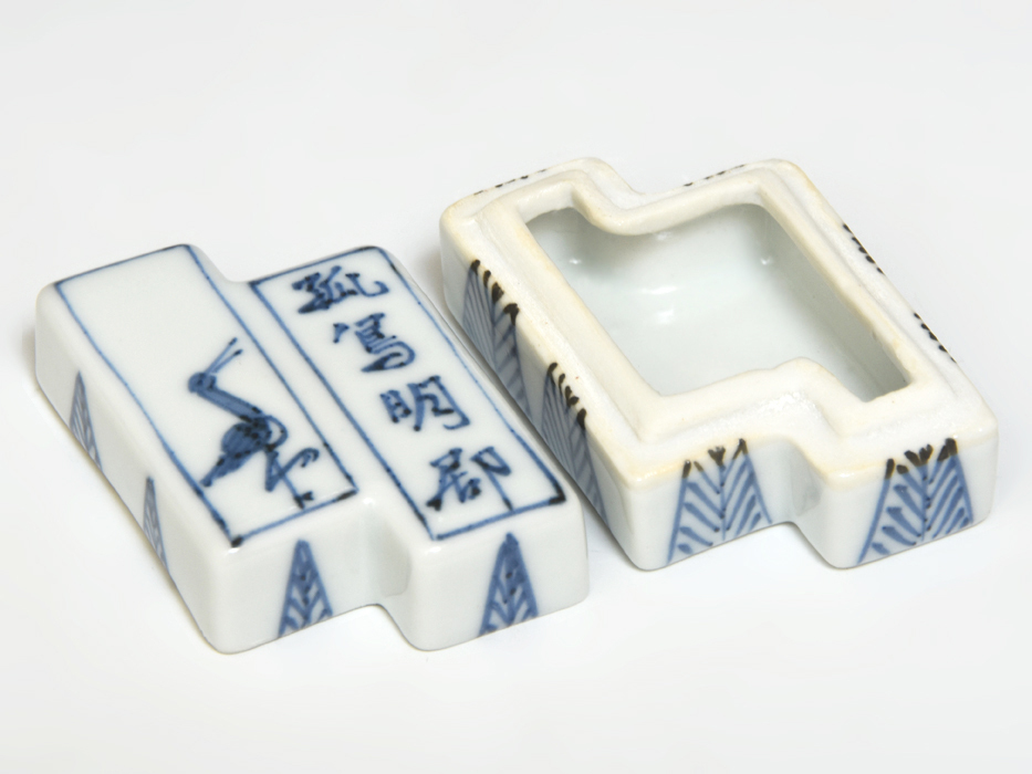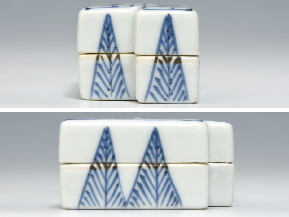 染付拍子木香合 型物香合番付西二段目 五世 幹山伝七 (作) 共箱 炉用 茶道具 香道具 美品 |