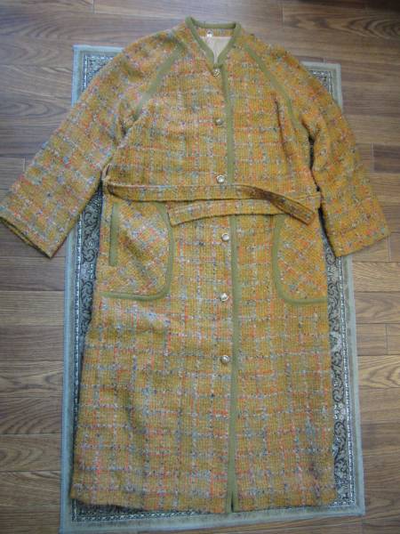 ニットで各部に縁取りされ、飾りボタンやラグラン袖、スタンド風カラーと突っ込みどころが満載です。