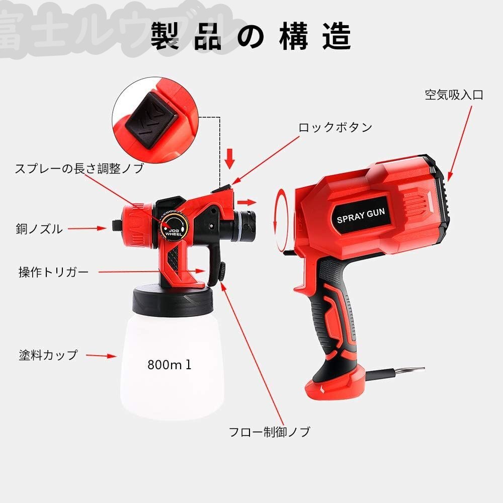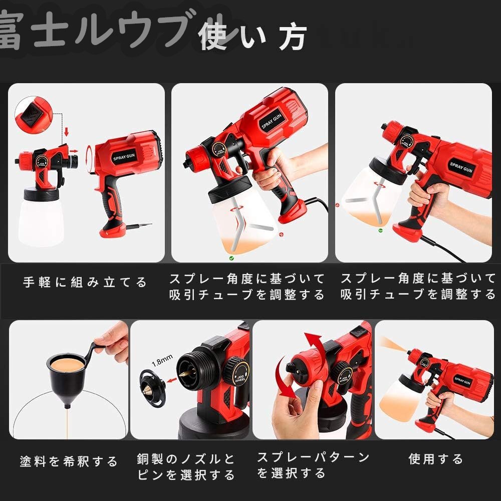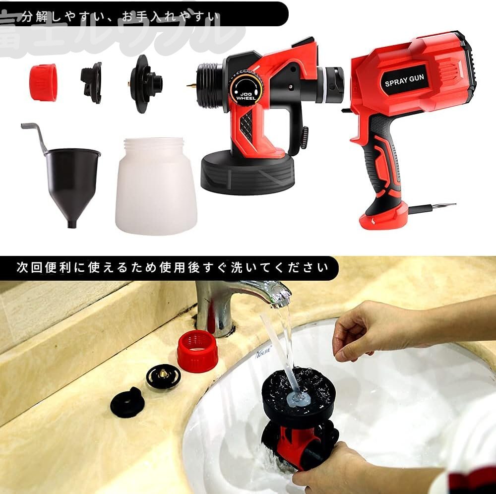【使用とお手入れやすい】この電動塗装機の使い方は非常に やすくで、塗料を入れて機械がソケットに差し込むだけで使用できて、初心者でも容易に使えます。ほかに、本機すべての部品は簡単に分解されているので、クリーニングブラシで簡単に洗います。