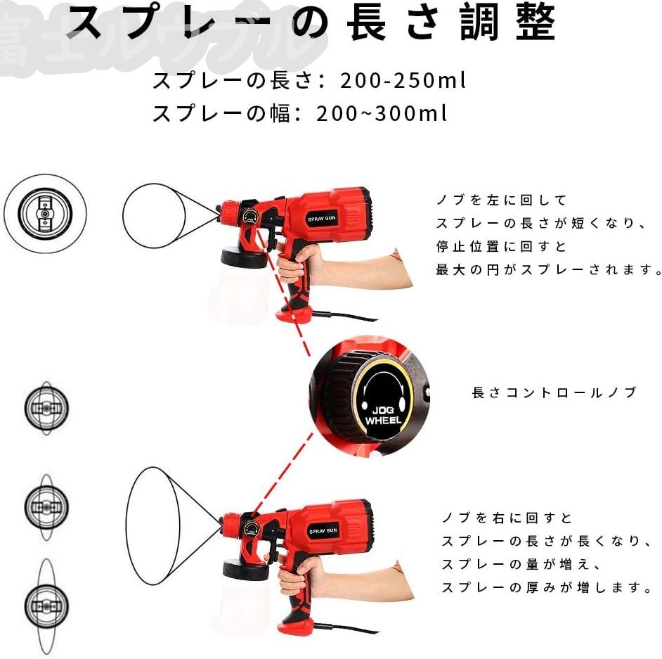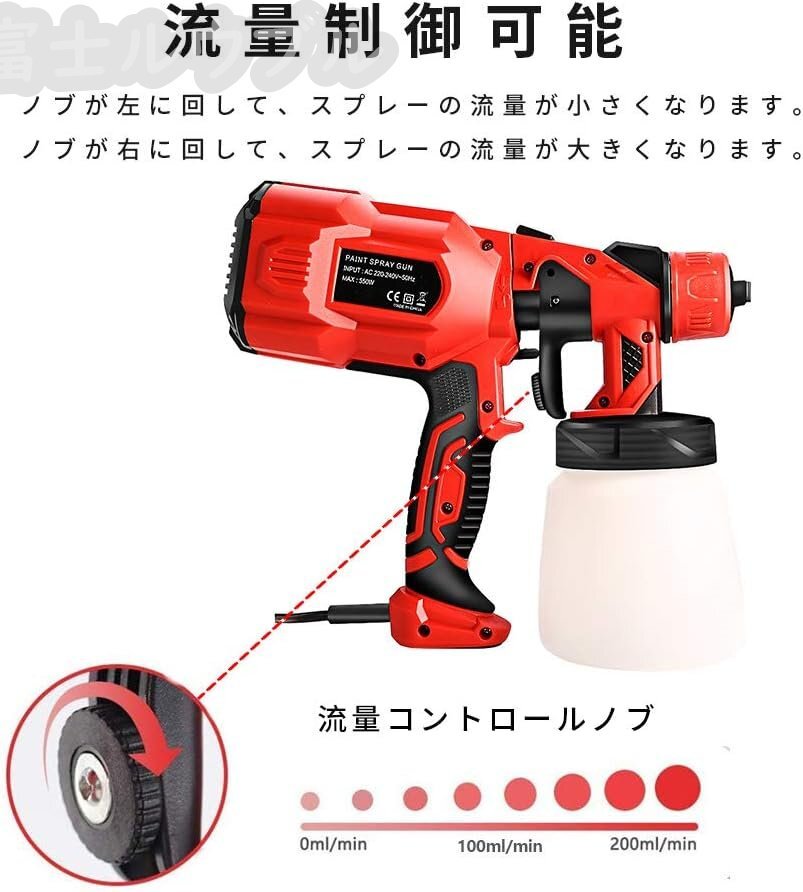 【調整可能な流量】噴霧器の流量制御ノブを調整することにより、塗料の出力量を自由に調整できます。塗料の滑らかさを制御することができます。ほかに、噴霧器の蓋が開けてらくらくに塗料を追加できます。