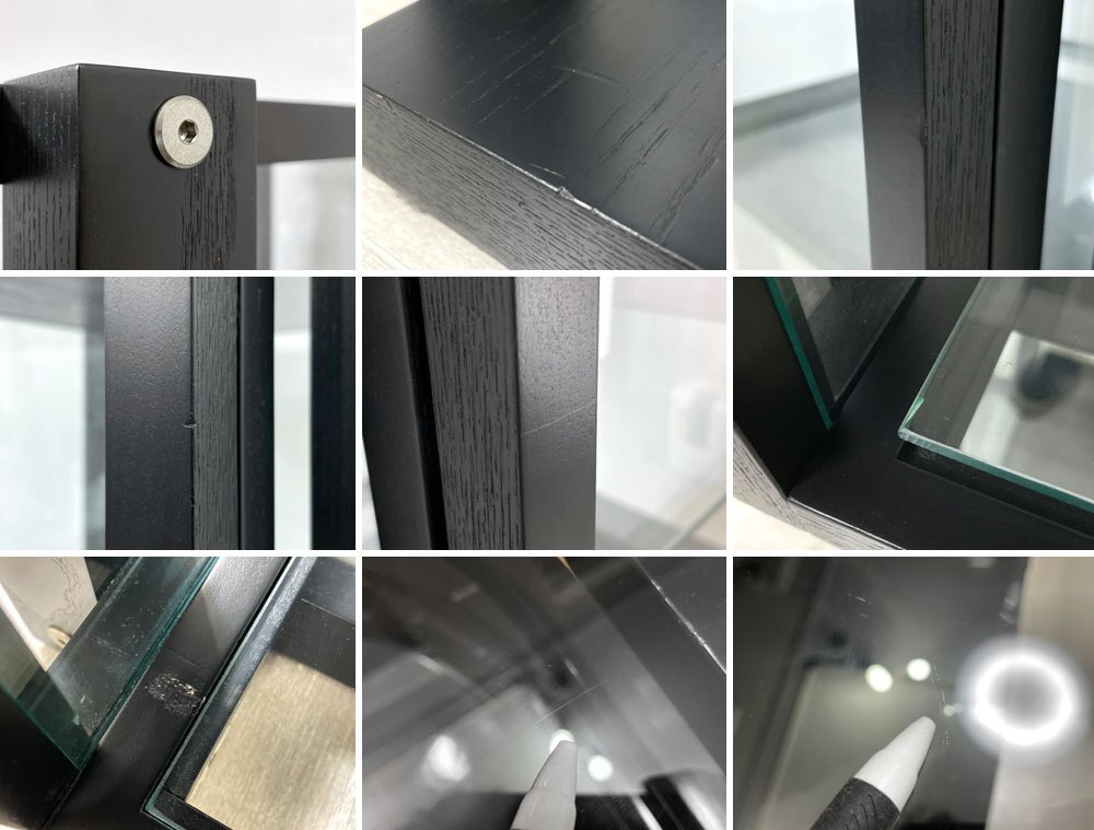 | コンディション | フレームの各所に軽微な打痕や擦れ、ペイントロス。ガラスの一部には微細なチップ、線傷が複数ございます上段の扉は蝶番が僅かに下がっておりますので、閉める際に少し持ち上げながら動かす事でスムーズに閉じる事が可能な状態となっております。軽微なダメージはあるものの、著しく目立つ様なダメージは無く概ね良好なコンディションを保っております。 ※特筆すべきコンディションは出来るだけ記載させて頂きますが、細かい擦れや傷、汚れ等を完全にお伝えする事は出来ません。画像をご確認の上、ご入札をご検討下さいませ。 ※取扱説明書や保証書等は記載が無い限り付属いたしません。 |