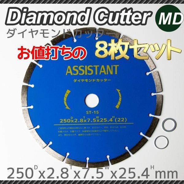 ダイヤモンドカッター 250mm 高品質 乾湿両用 調整リング付き(22 / 20リング付) 10インチ コンクリート用【8枚セット】