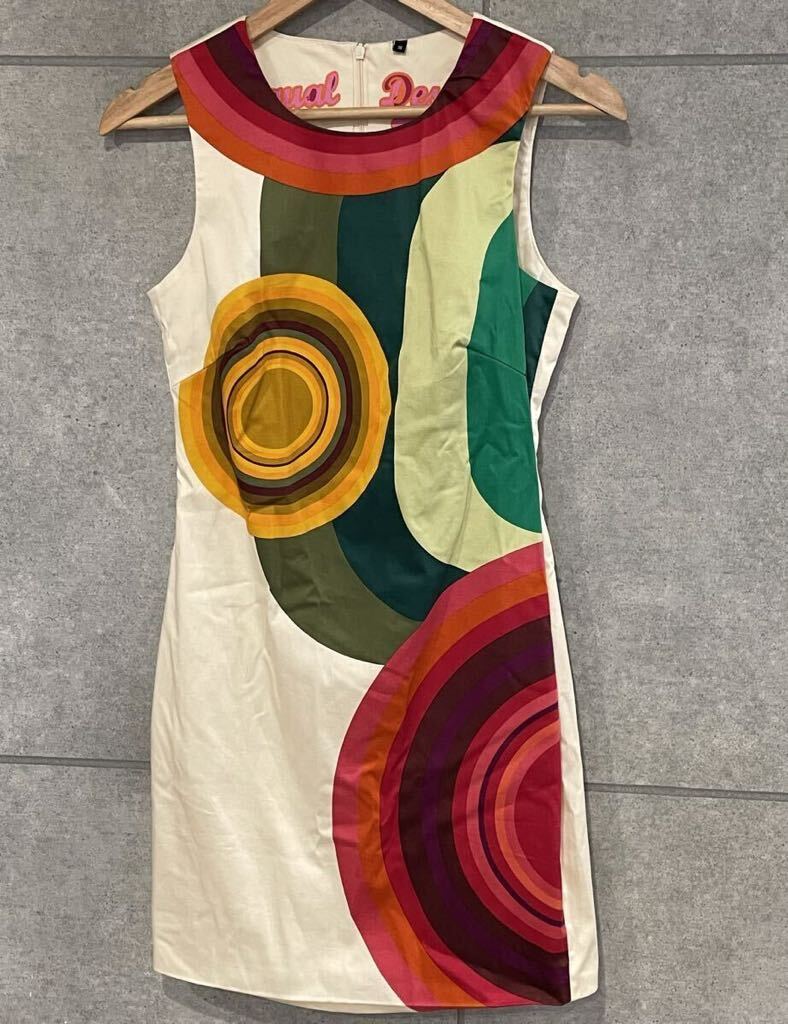 希少デザイン! Desigual デシグアル ノースリーブ ワンピース ベージュ系 36サイズ レディース タイトフィット ○ 新規×(B1)