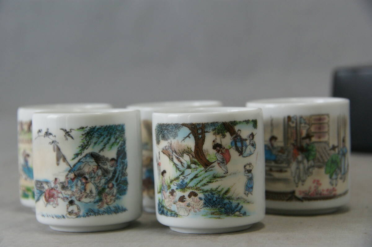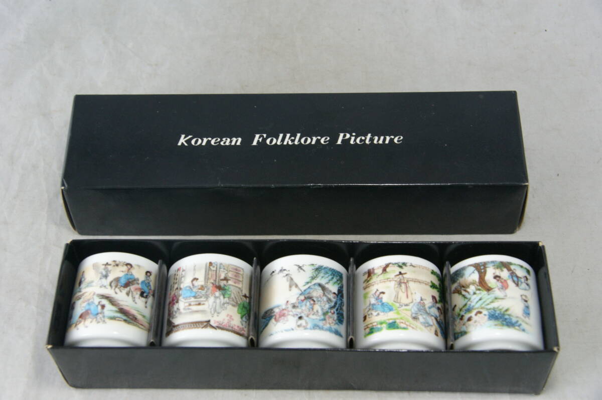 未使用 Korean Folkore Picture 韓国 民話絵 湯呑 ぐい呑 5客セット