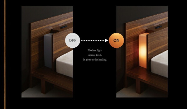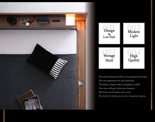モダンライト・コンセント付きローベッド 国産カバーポケットコイルマットレス付き セミダブル 組立設置付