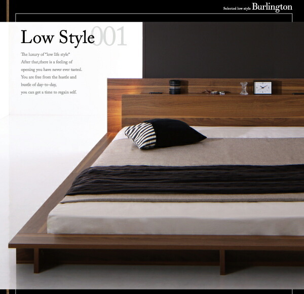 組立設置付き モダンライト・コンセント付きローベッド Burlington バーリントン 国産カバーポケットコイルマットレス付き セミダブル【フレームカラー:ウォルナットブラウン】です。