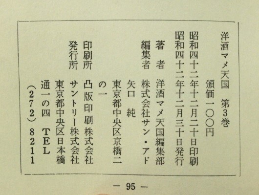 ▲な-408 古本「洋酒マメ天国 3」ブランデー 中古 サントリー 昭和42年12月発行 当時物 ミニブック 豆本 縦9.5cm横7cm厚さ1.3cm