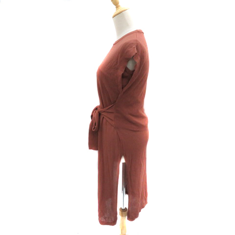 アズールバイマウジー AZUL by moussy ワンピース ひざ丈 フレンチスリーブ ウエストリボン スリット S ブラウン /YK33 レディース