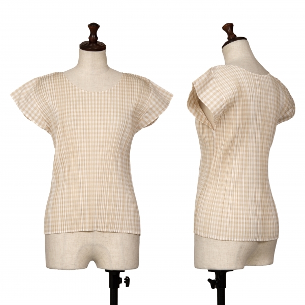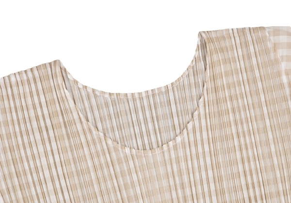 | プリーツプリーズPLEATS PLEASE ギンガムチェック切替プリーツカットソー 白ベージュ他4 |