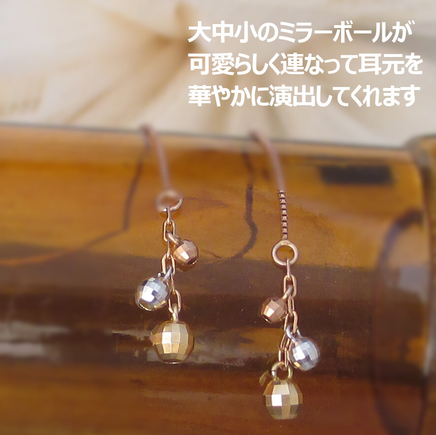 ピアス レディース ミラーボール アレルギー対応 k10 アメリカンピアス つけっぱなし メンズ 3カラー 3色 短め 小つぶ