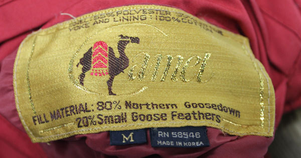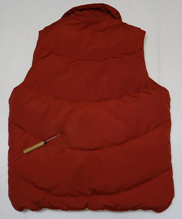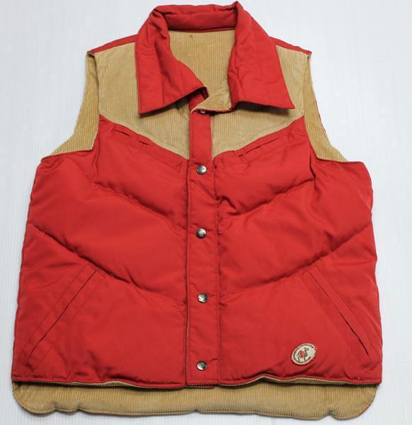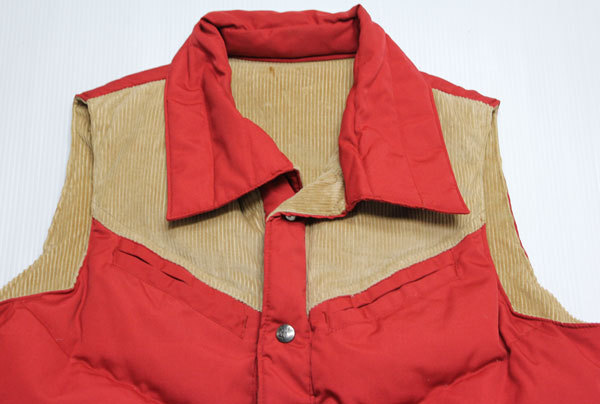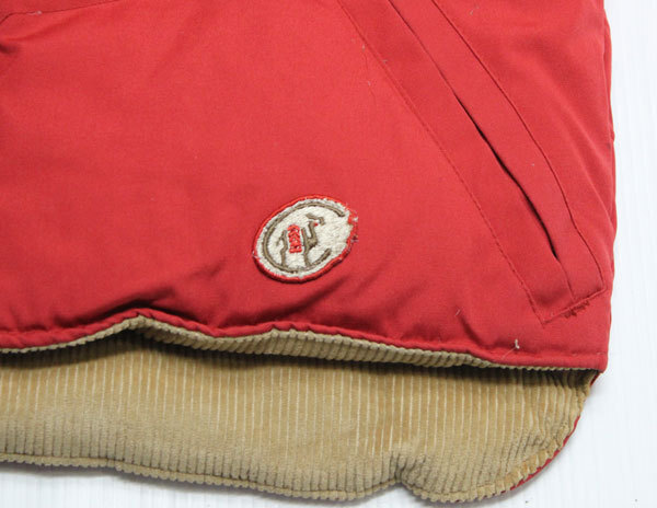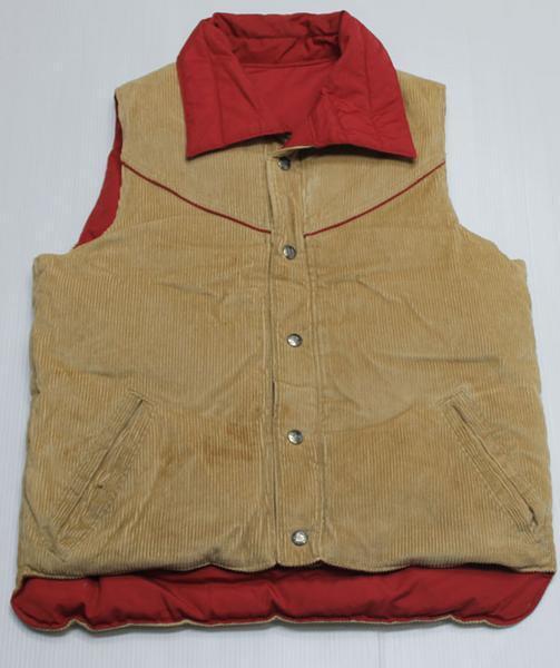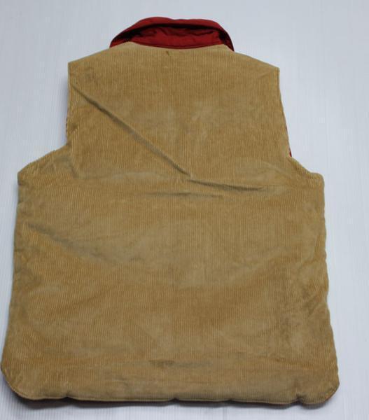 アメリカ買い付けのCAMELのリバーシブルダウンベストでオレンジ系側が綿ポリ×コーデュロイ(ベージュ系)の切り替えです。