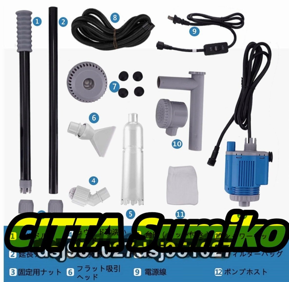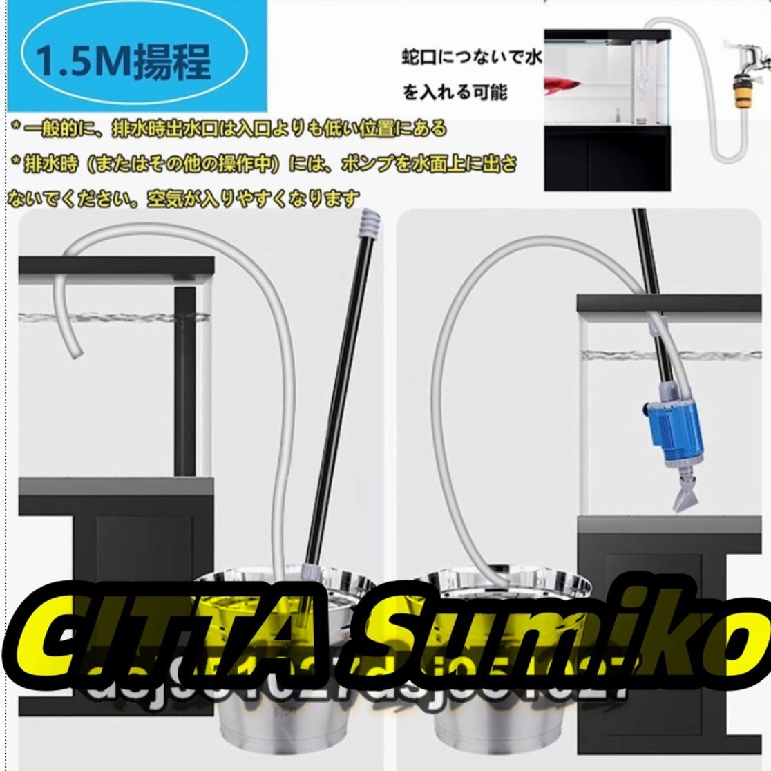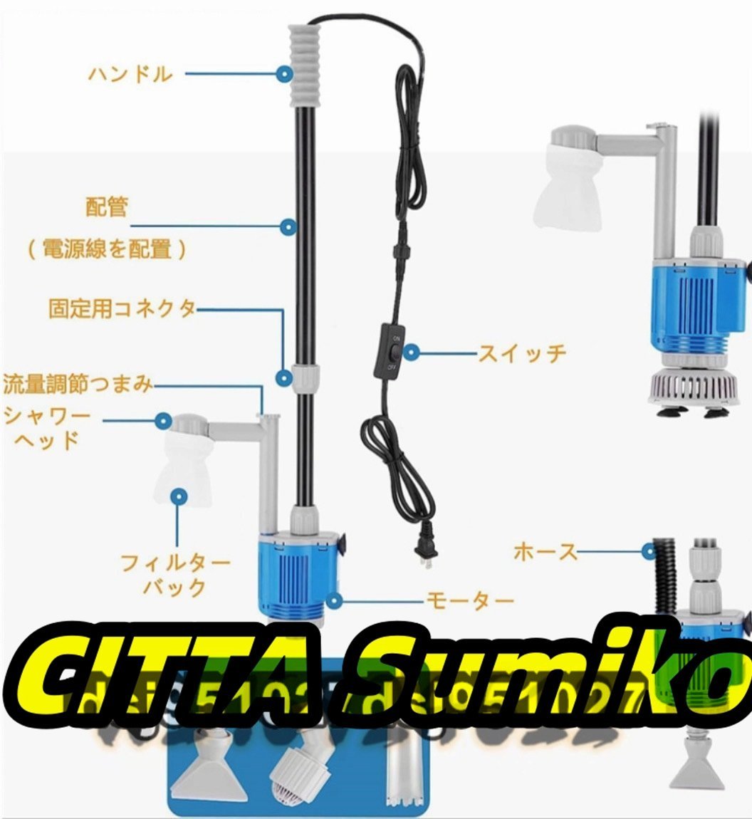 ★状態:新品未使用 【一台多役】1台、水槽の水換え、魚の糞や藻類や魚の餌の残留物を吸い取り、砂利掃除、水を酸素化し、不純物をろ過し、清潔などの多くのニーズに対応できます。★さまざまな吸引ポートを自由に切り替えて、フラット吸引ポートは、水中の景観のない水槽に適しています。360度自由に回転し、水槽の隅や底から排泄物や残留物を吸い込みます。★ラウンド吸引ポートは、景観砂のある水槽に適しています。45度の角度設計と立体形状により、砂利の吸引によるモーターの詰まりを防ぎます。★透明な砂洗浄ヘッドは、水槽内の砂を洗浄し、水槽内の水質を健康に保つことができます。★ベースは吸引ポートでもあり、水槽の底にある不純物を吸収することができます。底面と背面に吸盤が付いているので、水を交換しないときは水槽に固定できます。スペースを節約し、保管のトラブルを避けます。★ウォーターポンプとしても使用でき、また。シャワーヘッドと組み合わせて使用すると、酸素を供給できる。 【28W大出力&モーター分解可能】28Wの高出力、強力な吸引、清潔で簡単に水を交換します。水を吸い出す心配もない。フィルタが付きにより、不純物がフィルターを通してろ過され、水槽内の水が減少しないようにし、ろ過を循環させ、水質を浄化し、水を節約します。★モーターは工具なしで簡単に分解できるため、インペラの残留物を清掃するのに便利です。 【1.5m揚程&低水位】水交換高さは1.5mで、低い場所でも、高い場所における水槽に水を入れることができます。★フラット吸引ポートが接続されている場合、開始水位は12cmです。吸引ポートが接続されていない場合、最低5cmで開始できます。排水は0.5cmまで水を吸い上げることができます。(ポートを接続しない) 【操作簡単&水流の調整可能】手を濡れないで、水の交換しながら清掃もできるので、手間を減らします!アダプターは必要ありません。プラグを差し込むだけで使用でき、シンプルで便利です。独立した安全スイッチを備えた3mの長さの太い電源コードで、より良い安全性能です。★シャワーに接続されたロッドに水流量調節つまみがあります。 シャワー機能使用時、水量を調節します。 【小型~中型水槽使用】ハンドルは40-75cmで自由に調整でき、中、大型水槽でもタンクの底まで届きます。排水ホースは約1.5m、長いので、水も容易に移動できる。80cm以下の水槽に使用していただきます。