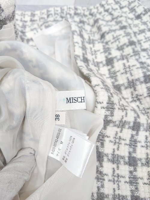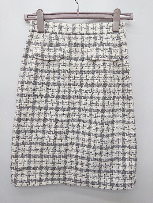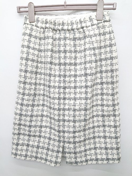 ◇ MISCH MASCH ミッシュマッシュ 千鳥格子 ツイード調 膝丈 タイト スカート サイズM ホワイト グレー系 レディース P