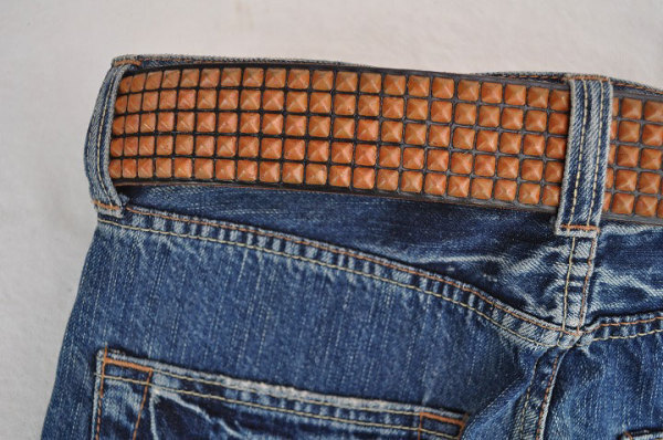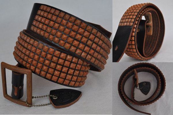 アンティーク仕様ブラス(真鍮)ピラミッド5連ベルト