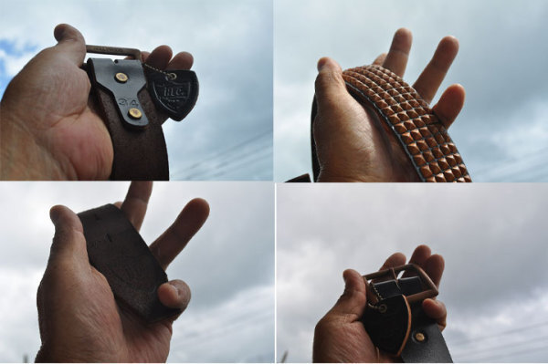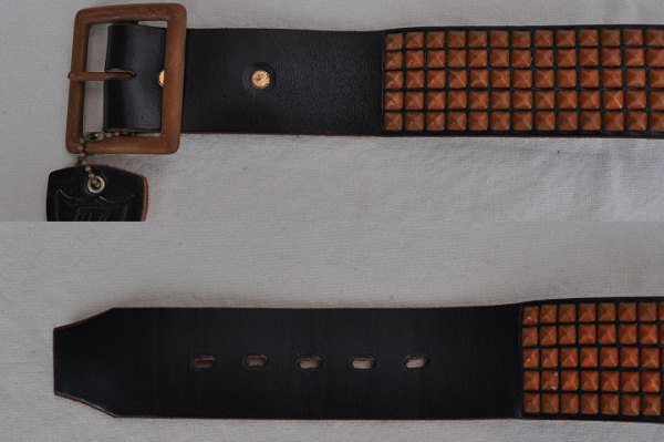 HOLLYWOOD TRADING CO. HTCアンティーク仕様ブラスピラミッド5連ベルトブラックレザーサイズ34未使用中古仕上げCALIFORNIA