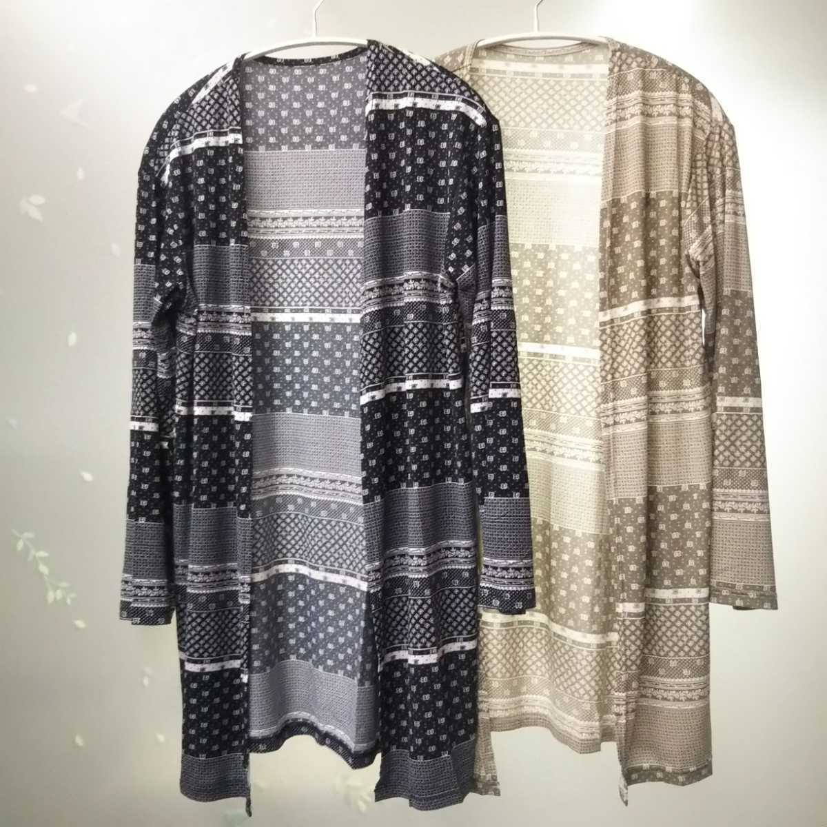 匿名/パケットポスト送込 【2枚set 紙タグ付】 黒系・ベージュ系 柄 薄手 長袖 ノーカラー
