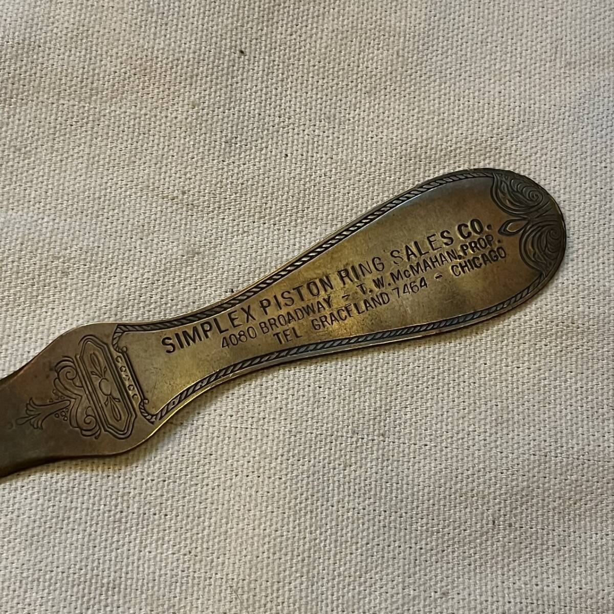 『SIMPLEX PISTON RING SALES CO.』のアドバタイジングが入ったレターオープナーになります。